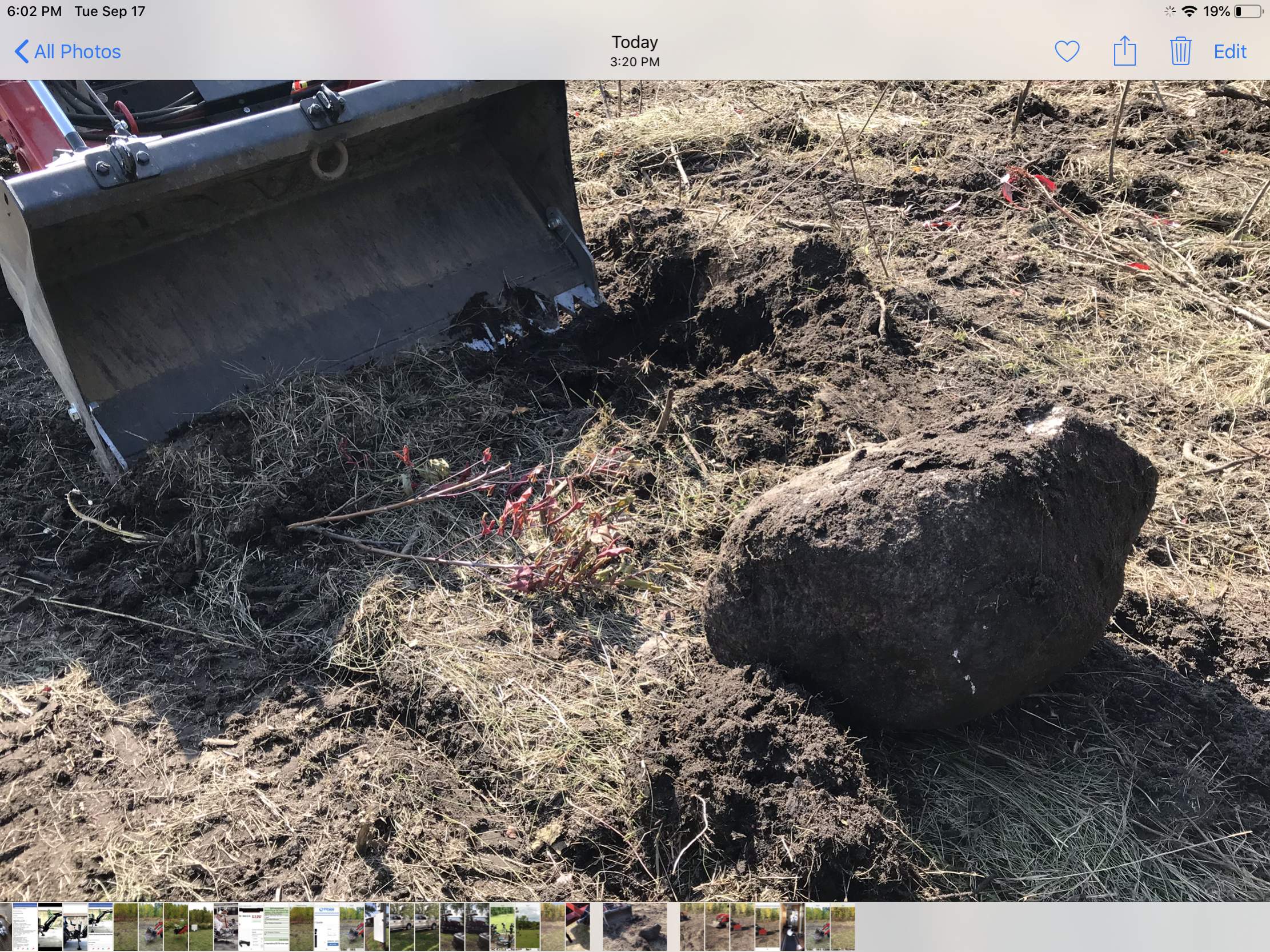 This rock was flush with the ground and the 1705 with Piranha bar had no issue getting it out by curling the bucket while pushing, I thought for sure I would damage the bar but not even a mark.
