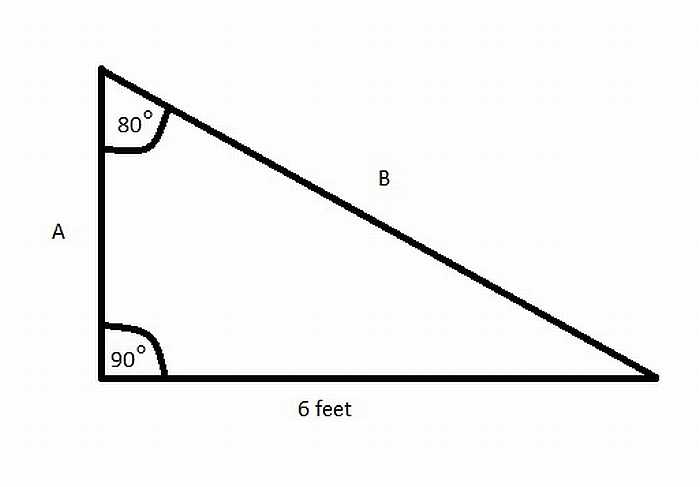 A = 6' / Tan(80) = 1.058'