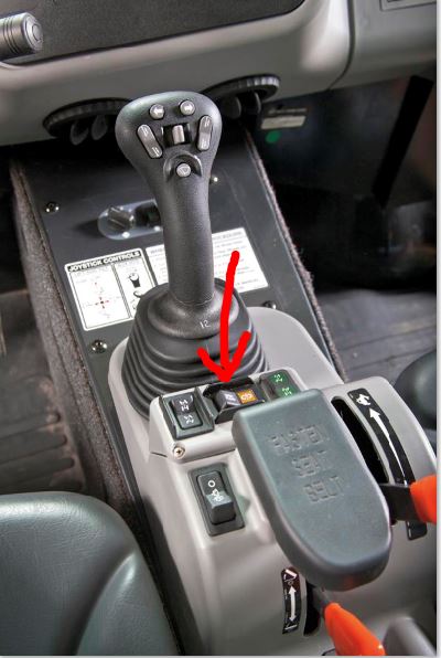 At idle with the brush hog spinning, when the high flow switch is pushed you can hear the blades spin faster and the light in the switch stays on.