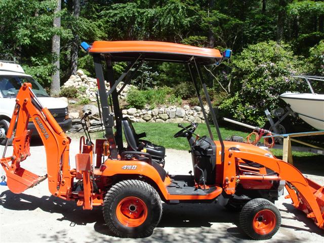 And by the way fiddler and for all you bx "capacity" guys, the beginning of my driveway is over 15 degrees slope and in low and 4 wheel + two kids in the bucket to keep the nose down the bx doesn't even know the 5000lb boat and trailer is behind it. I usually keep the wheel stand down just in case. The E brake also holds in the first lock position.