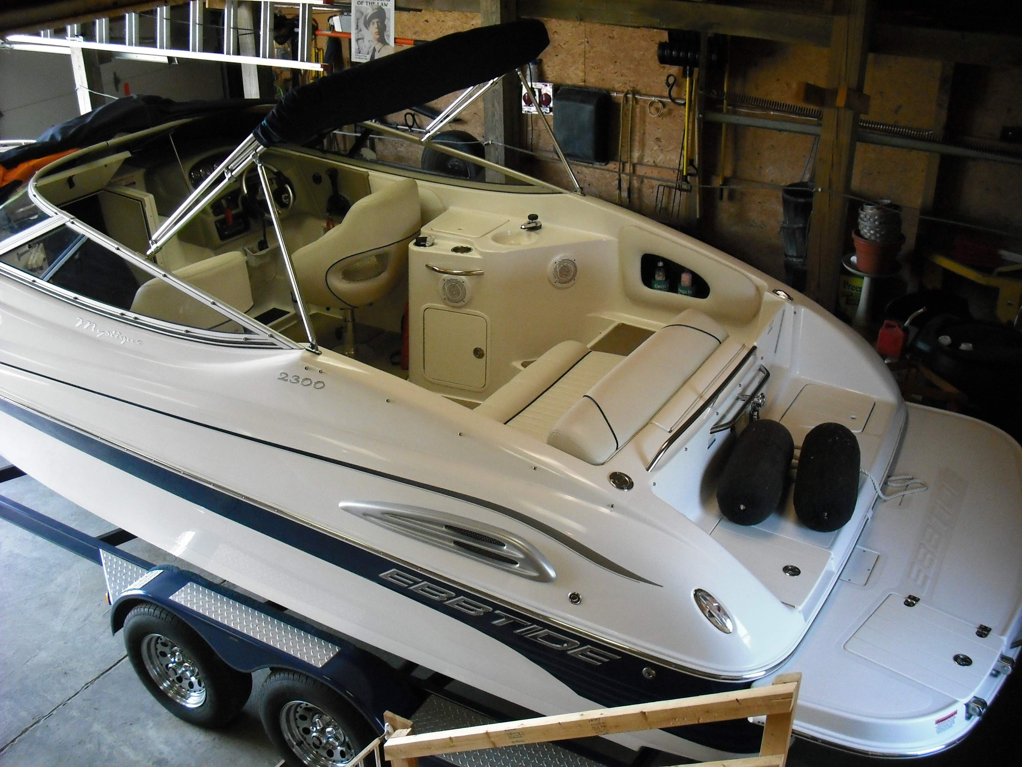 That Cobalt is one sweet riding boat. I think the boat and trailer weigh about 5500 lbs or so - plus gear and gas. They changed the model number to 232 now. Anyway, its 23 feet plus the swim platform. I have the 6.2 liter Mercruiser with duo (counter-rotating) props. Not too bad on fuel.....if you use a little common sense with the throttle.....about like the Jeep (But that is not always possible - grin).