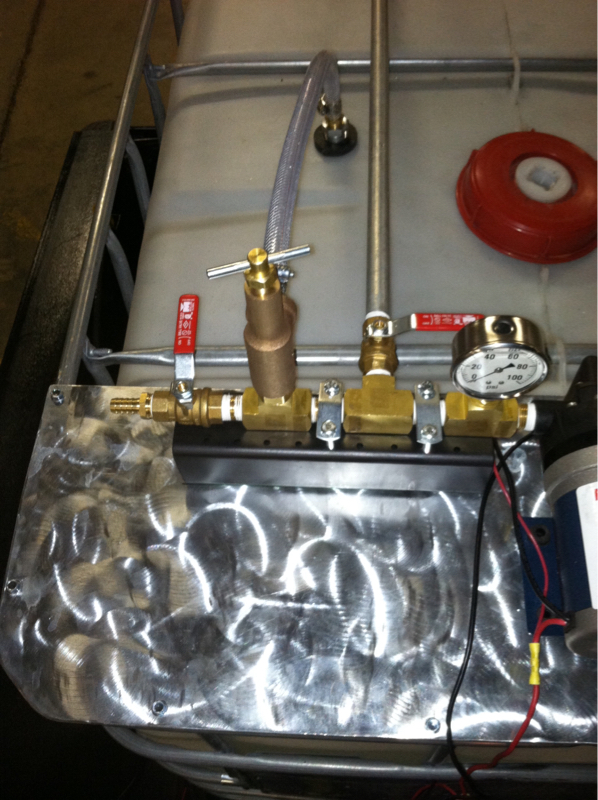 I do not use electric pump motors. Use the width of the trailer and see if the pump can support the nozzles needed for full width pass or more, you really don't want to drive on your spray. The new commercial sprayers even a foam marking system to set up your next pass overlap. I am old school and use my previous tire depressions and gauge the distance to overlap the previous pass. This should work for you. You want the edges of the outside triangle spray to overlap about two inches. Test on a dry surface like a parking area.