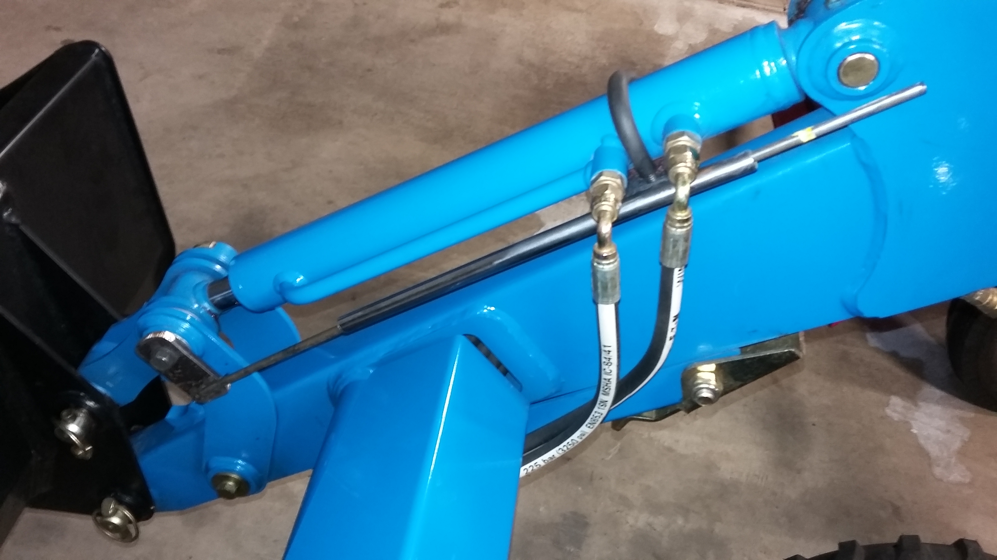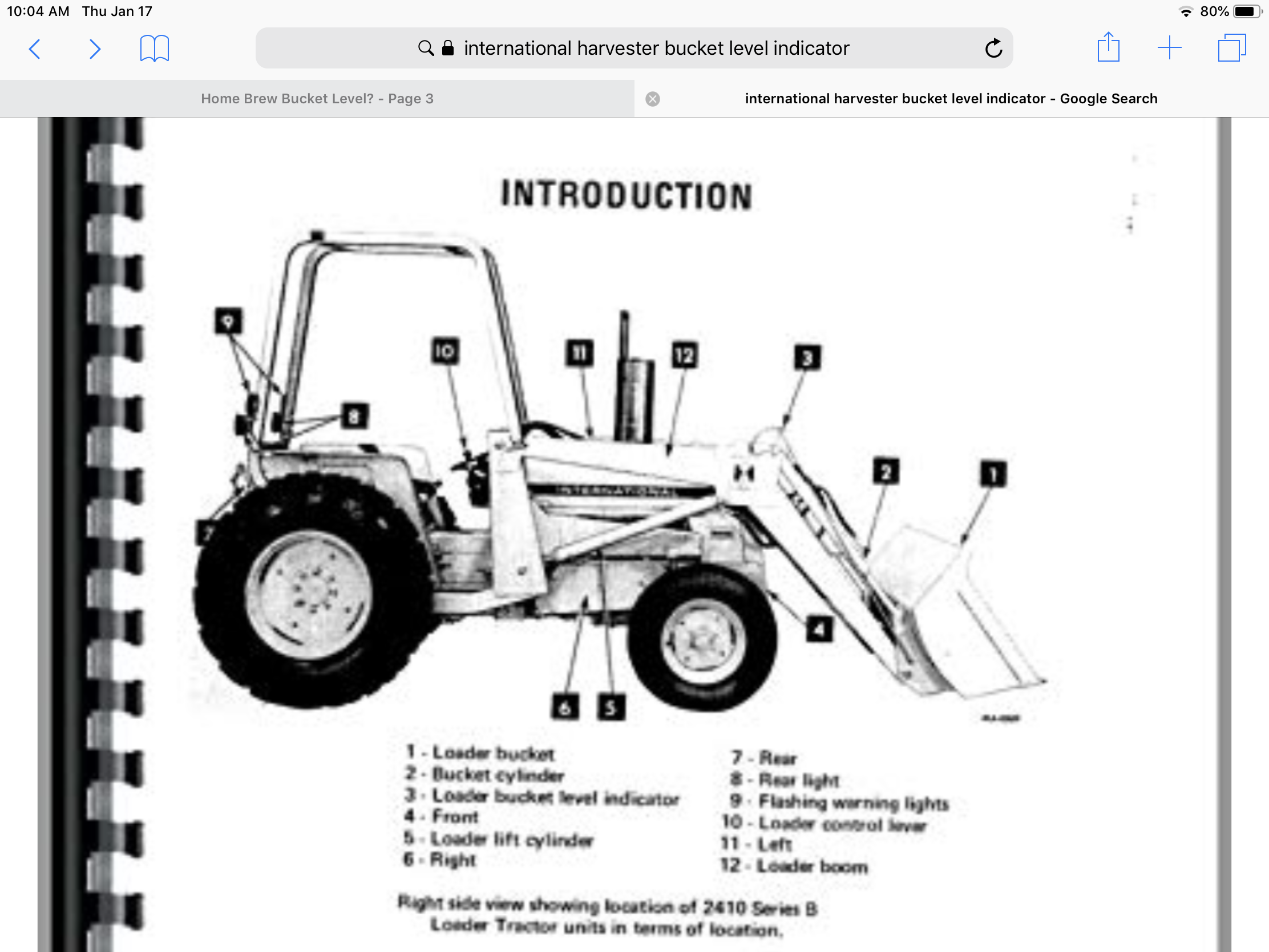 I had a bucket level indicator on our old IH2500b. There was a half-round piece of metal with indicator marks on a pivot hanging on the side of the FEL arm at the bend. There was a pointer for the marks fixed to the arm. There was a rod connected to one edge of the round piece and the other end was on the bucket bracket above where the right dump/curl cylinder attached, so the rod was parallel to the arm.