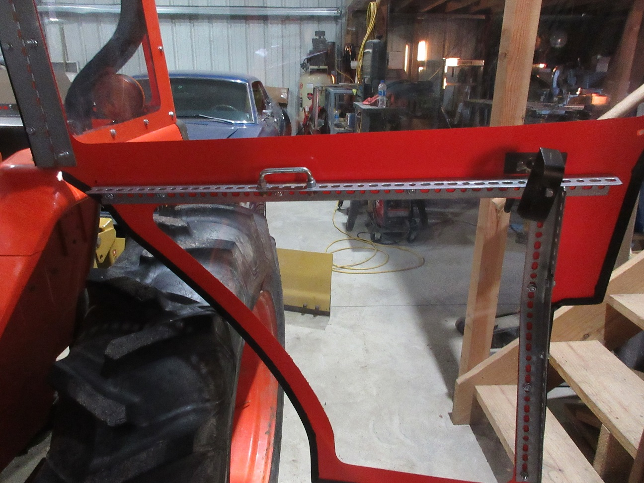 I decided because the plastic sheets are clear that it might make more sense to paint the inside surface rather than the outside. This is a work vehicle and I have been known to drive under low hanging tree limbs while brush hogging around the edges of fields and I didn't want those tree limbs to scrape all that pretty orange paint off. BTW, the paint is there mostly to provide shade in the summertime which also explains why I extended it down so far on the side and rear panels.