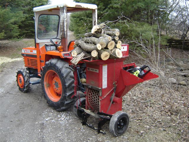 BTW my chipper is mounted to a pallet which makes it easy to move around with the FEL when not attached to the tractor and a good place to carry the larger gas saw when it is.