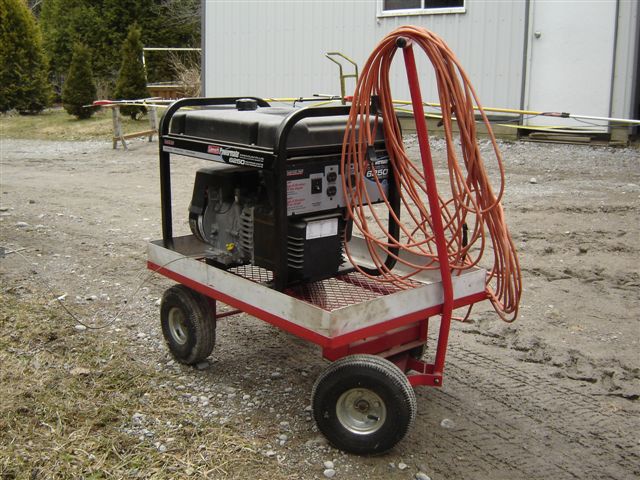 I am a electrician and some bite big. As the generator is sitting on rubber tires the frame is not referenced to ground. I use a stainlees steel bonding cable on a 3/16" rod as a quick ground. The generator I put about 75' away just so that I can hear the electric saw cutting through the branch. When you are cutting like this I do not even have the ear muffs on my mesh face shield down. There is the chance that the saw may get caught or smashed but it is better it than me. I have the material at home to build a 40' boom lift, now that is going to be fun.