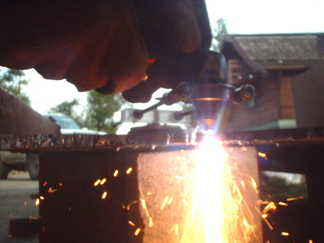 The other thing is just an observation about plasma cutters in general (especially when I was gouging out welds laying on my back!). The debris from cutting ranges all the way from fine powder to larger chunks the size of beach sand, and the occasional flaming fireball. These can make a mess of your torch head and hoses. The manufacturers sell leather hose covers and a leather torch head "cuff" or "mitten" to protect them. these now seem like a real good investment. I haven't priced a new hose, but it is not just a piece of battery cable like a stick welder, this has got multiple wires and an air hose in it, and a very complex termination in the torch head and disconnect. I am sure replacement would cost a bundle. I plan to take a deer hide I've got and make a lace up sleeve for the last six or eight feet of hose, and a cuff that laces around the torch head tip and then folds back over your hands to protect the torch body. I am even trying to be very careful to not even step on the hose. At one point I actually got a piece of crud up in the trigger switch while I was gouging and couldn't budge the trigger. I see now why the torch handle and trigger that I replaced were so badly scarred and broken. There is a lot of high intensity violence going on at the end of that torch! I have seen globs of steel ejected that were blindingly bright through a #11 welding lens. I guess it is literally steel hot enough to burn like magnesium if only briefly.