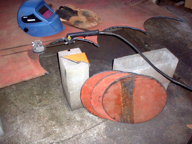 The only two weaknesses I have seen in my circle-jig so far are: First that you have to make sure the threaded bolt nuts are socked down real tight. Initially I was thinking to use wing nuts, but I've gone back to hex nuts that I can tighten with a wrench. You have to really sock the nuts down tight so that the torch head can't twist relative to the center magnet. The plasma cutter kerf is so narrow (about 1/10" with a new tip) that very solid alignment is critical to keeping the arc from blowing back. If the torch head is allowed to twist away from perpendicular with the work, it becomes much harder to get a clean cut. Fighting this is a pretty heavy hose/cable and a torch handle that gives you a lot of leverage.