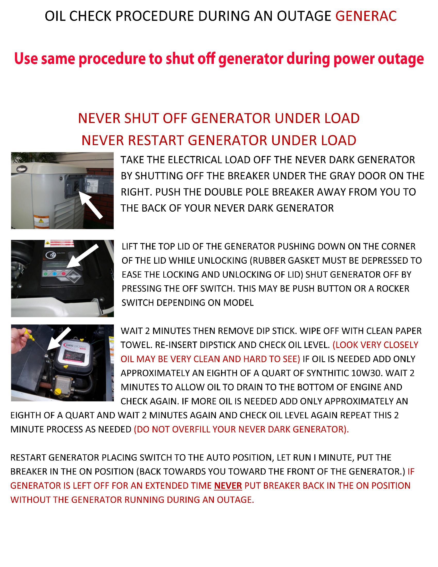 1. I will turn off the 2 pole breaker on the side of the generator.