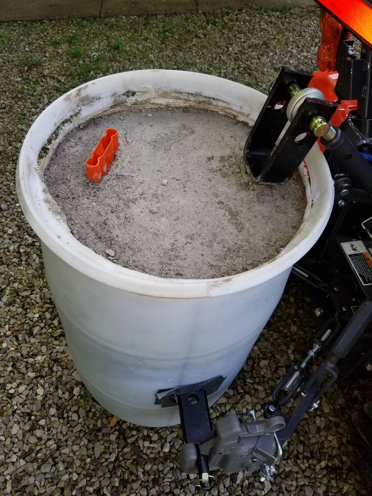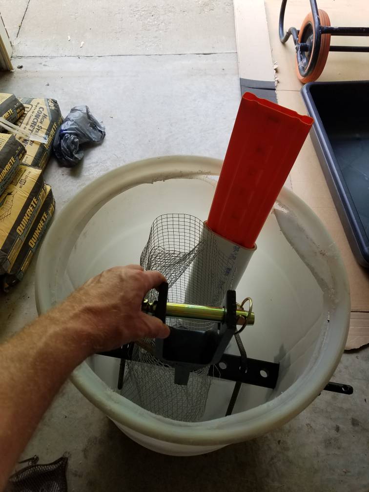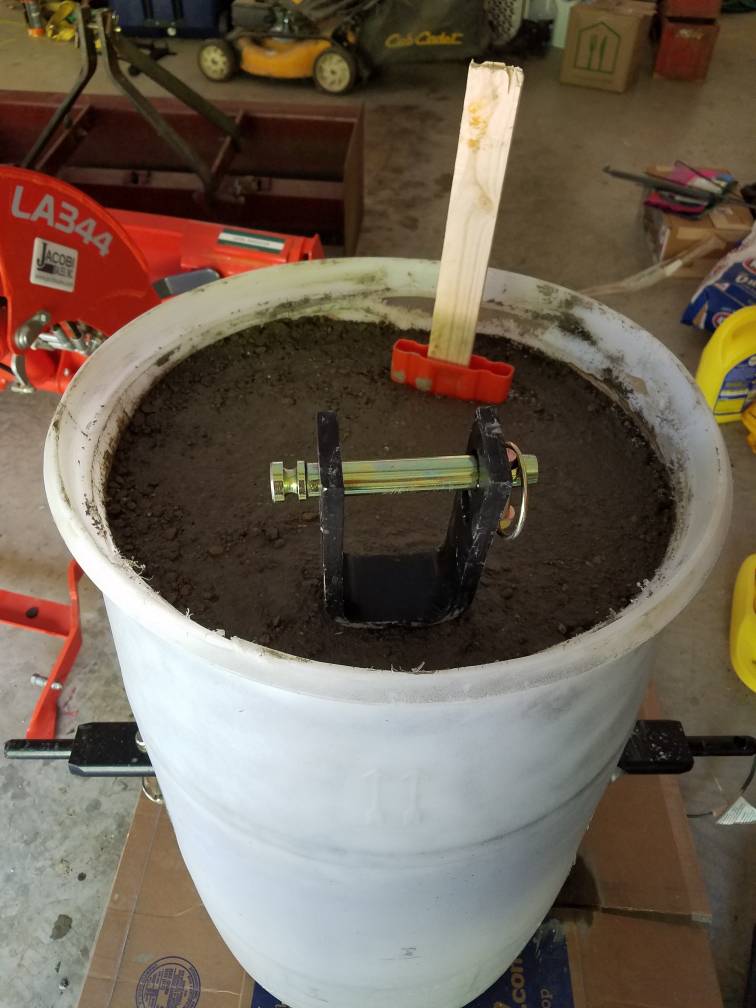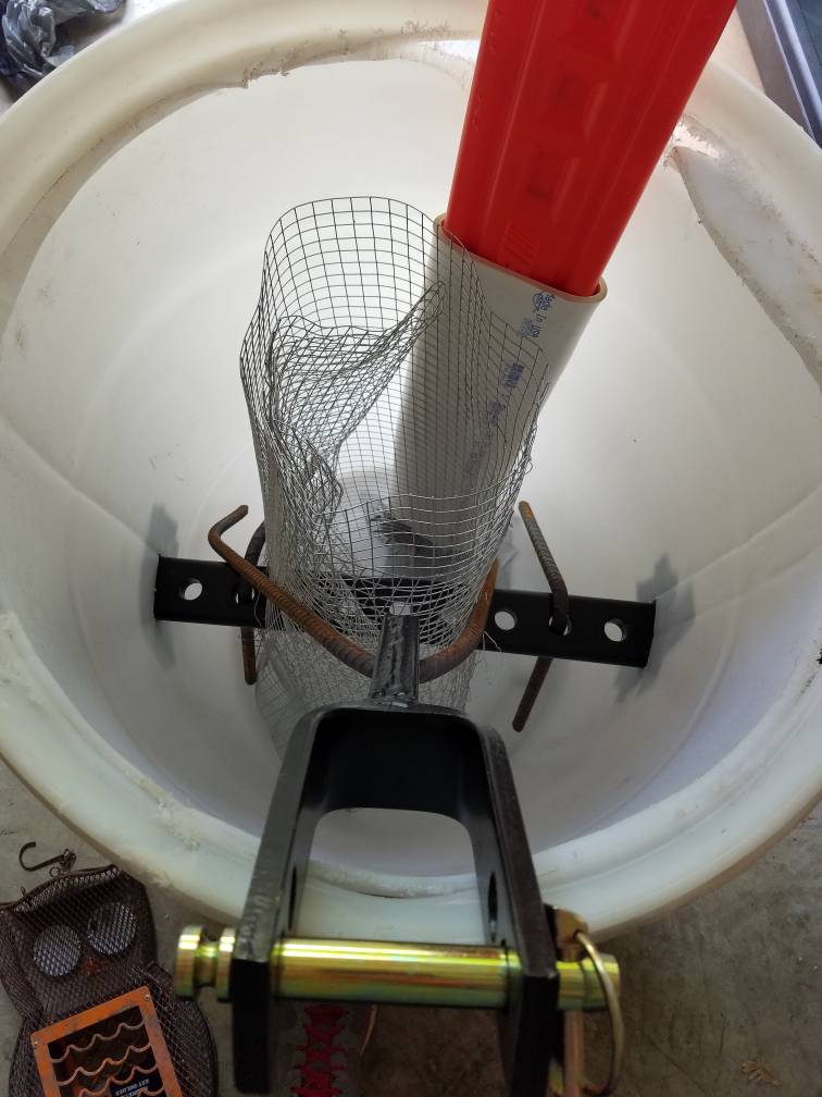 I started with a 30 gallon barrel and 10 60lb bags of concrete. Had about 4 feet of chicken wire that i wrapped up and set in barrel. I ran drawbar through the wire.