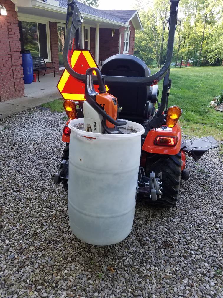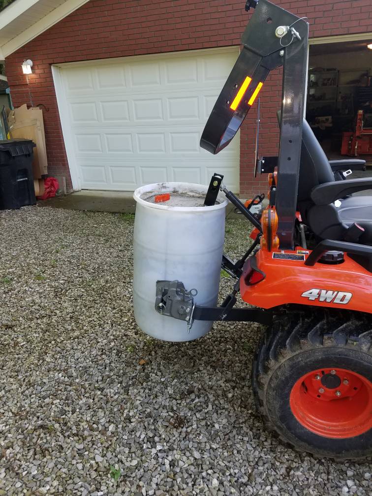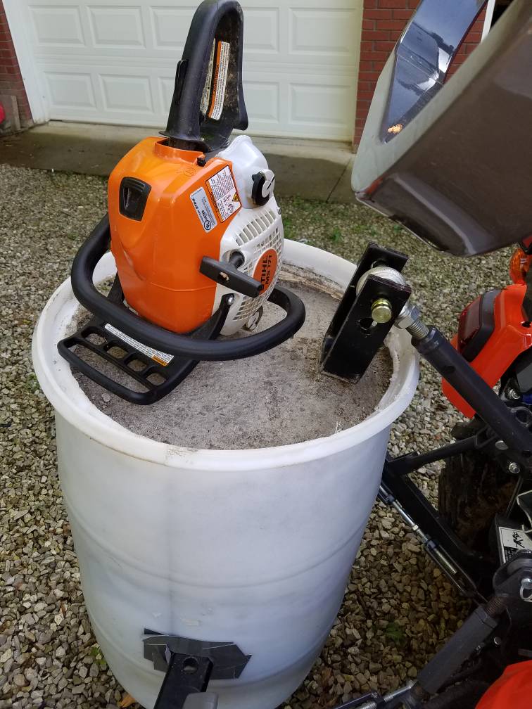 Had a 2ft piece of pvc that i melted and flattened and pushed through the bottom of the barrel. I then placed a chainsaw bar scabbard down in the pvc to hold my chainsaw. I didn't even think of lining the scabbard up with the toplink until after i poured concrete. Oh well, too late now.