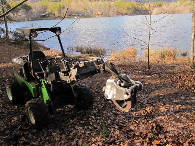 In answer to how its made....just saw a picture from sweden or norway and couldn't see the innards, so I just used doorskin for patterns to figure it out, and mocked it up full scale and used finish nails as the center of the pivots, so I could open and close it with the connecting links and used a 6 inch stroke hydraulic cyl. I had bought in anticipation of project and used that in mockup too, and then cut out the steel and aluminum and drilled to suit. I waited until it was operational before welding in the flat bar reinforcement of the jaws to make sure jaws passed by each other OK. It actually opens up almost 40 inches. It is unreal fast picking up and moving logs around, even big logs around and loading trucks etc. When cutting up whole trees you can use it to pick up an end and support the tree to cut it up into managable chunks. If someone else wants to build one I can share the patterns. Head scratchin's the hard part.