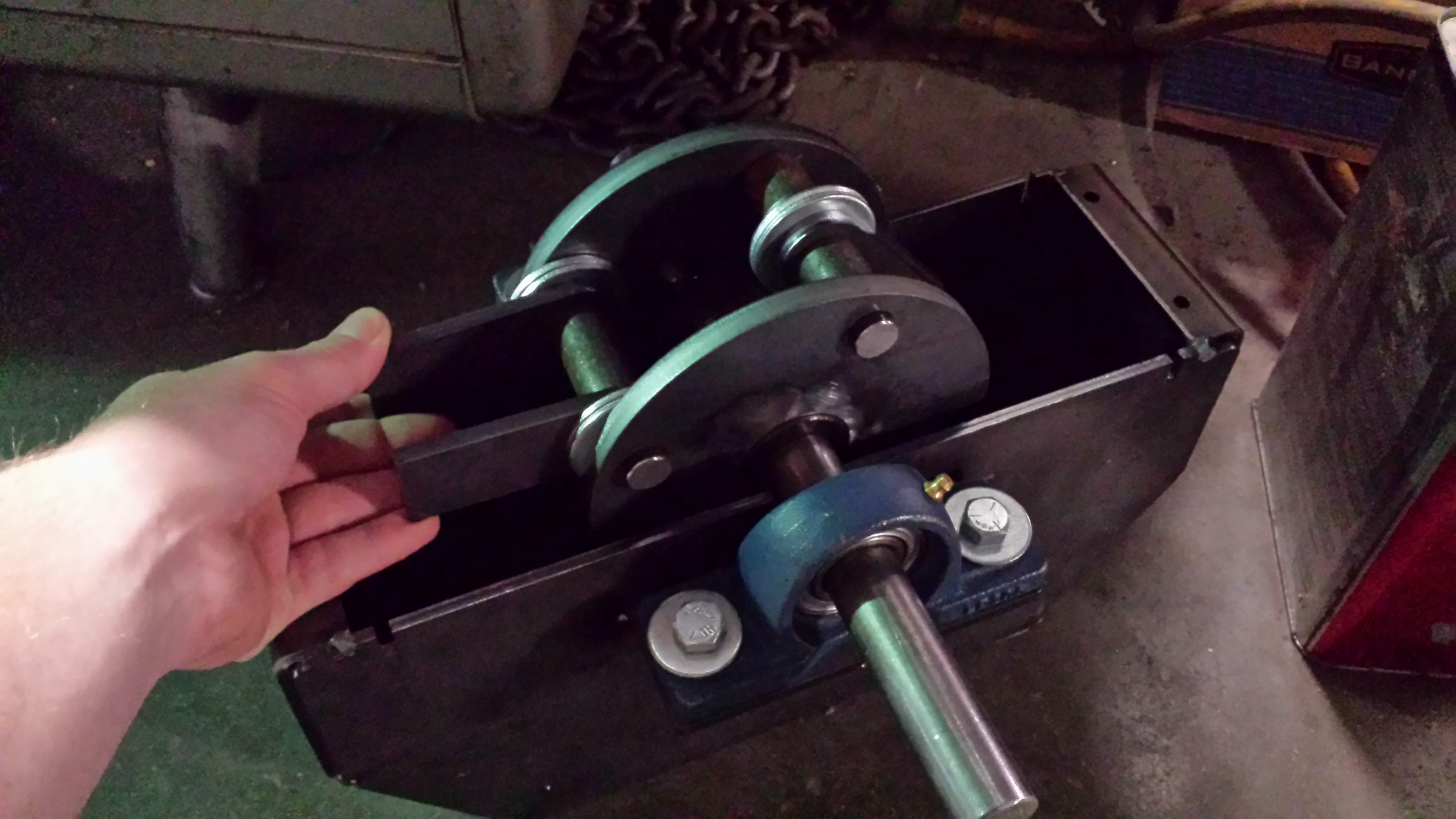 Here is a picture of the little contraption, its not a very good picture, but it shows the overall size and what I have done so far. The motor is a 3/4 HP 120v that I borrowed off our hay elevator. The Blue tub is there to catch the ground feed.