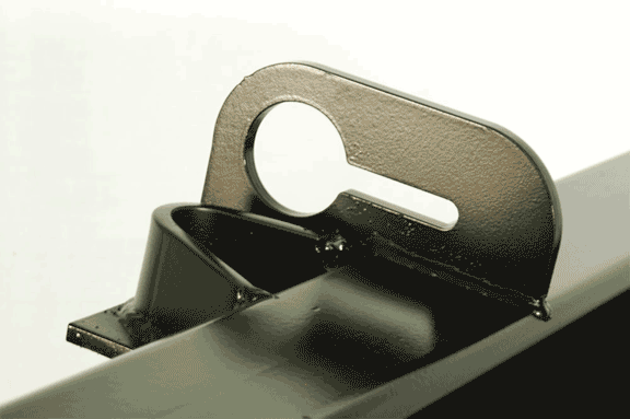 Please do not weld on the outer edges of the bucket... Best placement for strength is inline with the loader arms. Placing at the outer edges could leave you vulnerable for uneven loads to twist your loader or bucket into an uneven position. See placement. We use a self-locking chain hook.