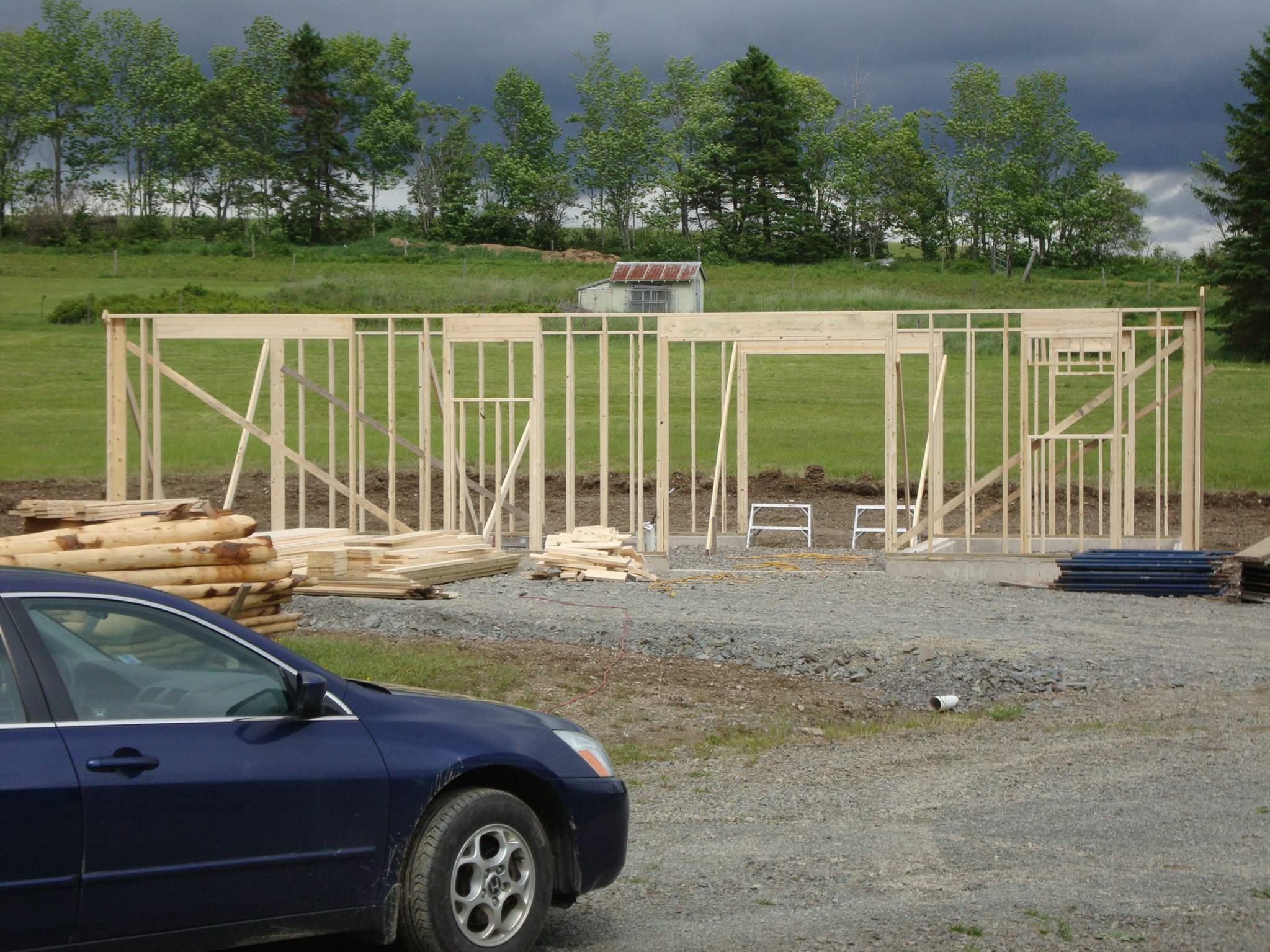 Unless it's raining tomorrow we should be able to start framing. It's me and two slightly older fellas, so I expect a pretty relaxed pace. Our target is to have the roof on and tight in two weeks, weather permitting.