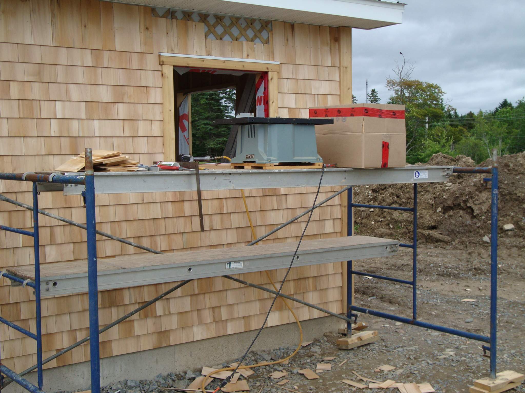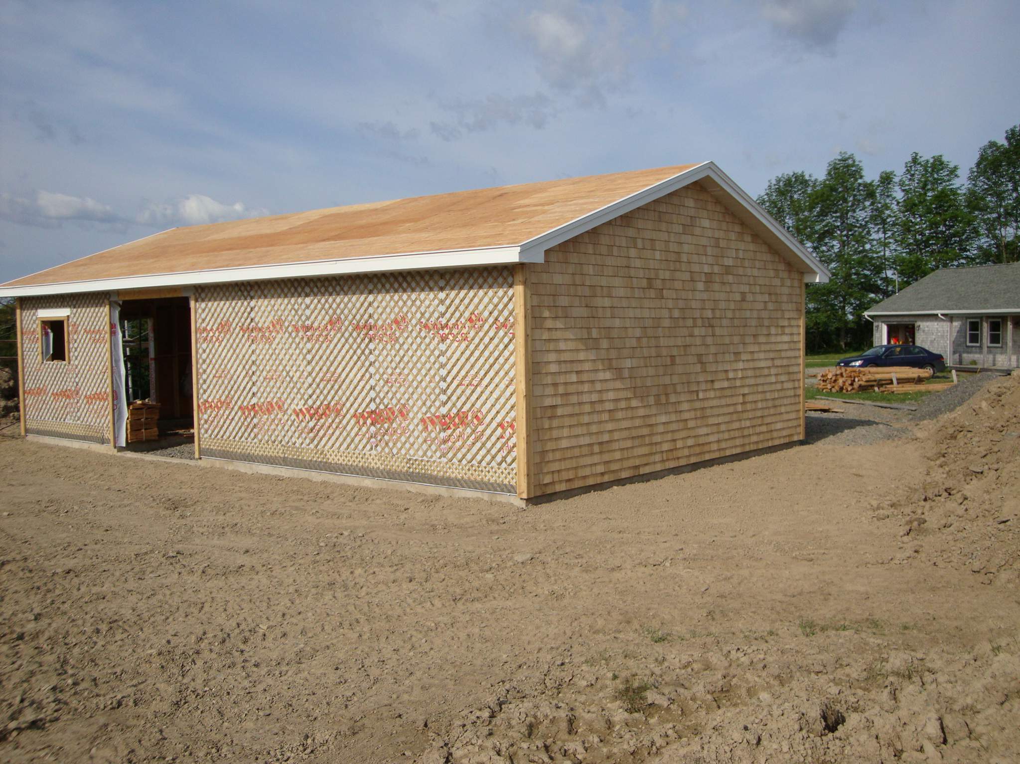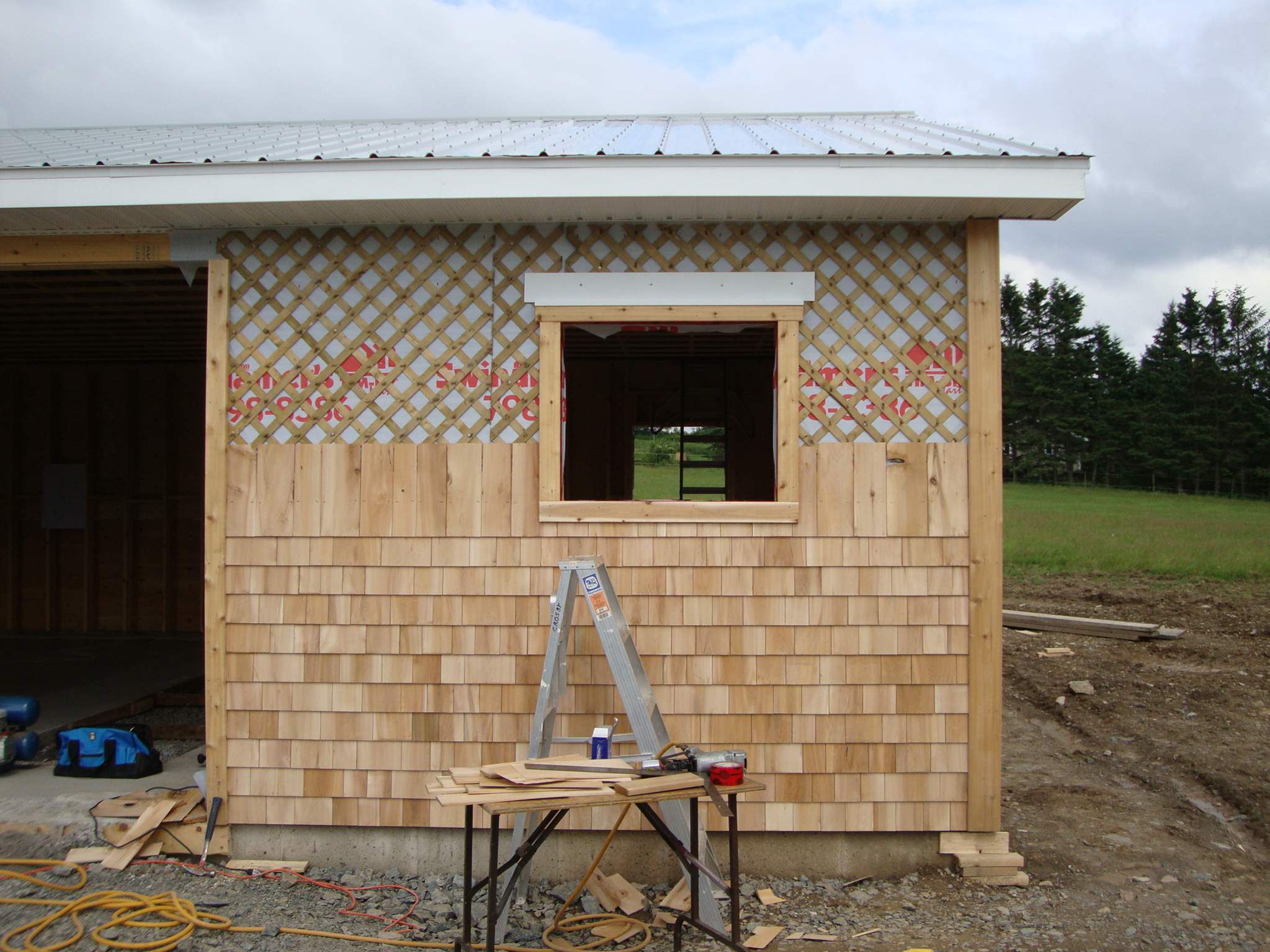 The shingling is coming along, we have both gable ends finished now, and on to the sides. The staple count is at ~ 6000-7000 so far, and 19 bundles of shingles.