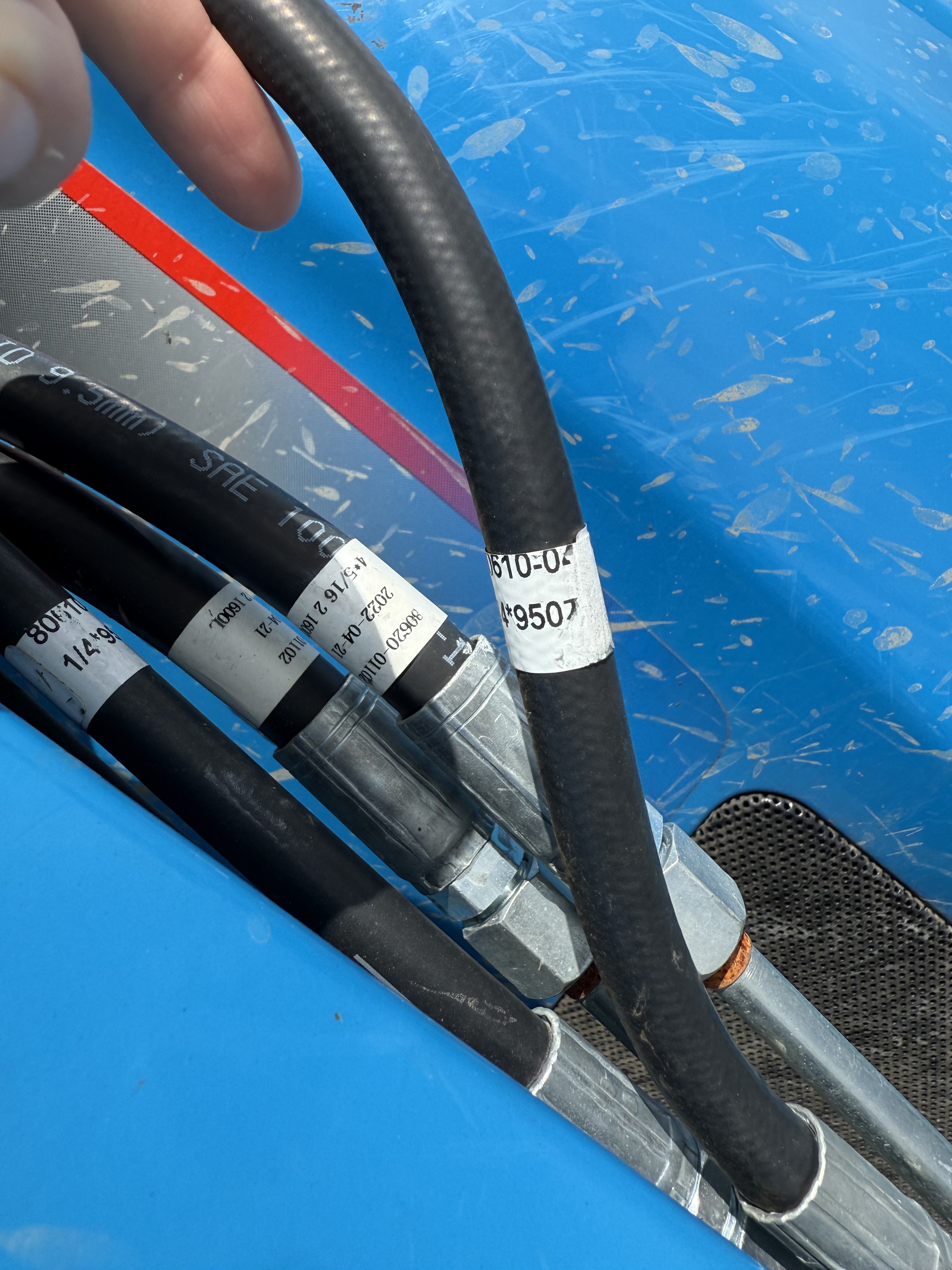 I need to replace this hydraulic hose that has a split and is leaking. Can someone tell me or provide a link for exactly what I need? Google image search isn’t helping.