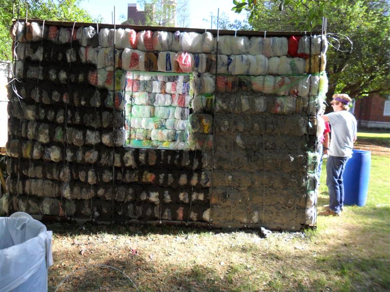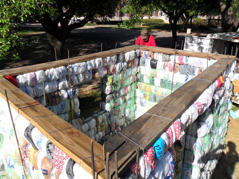 That looks interesting, straw bale building with an urban byproduct.:thumbsup:
