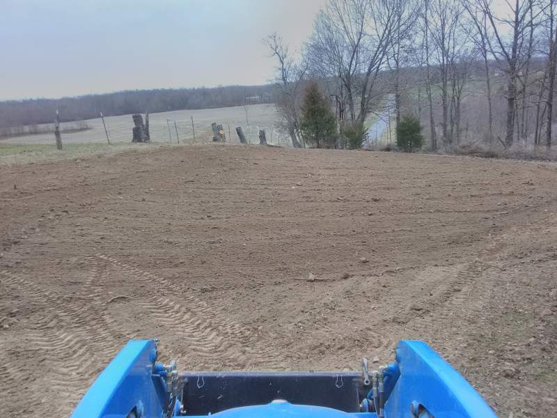 I tore out a bunch of junk greenery, scrub brush, honeysuckle, small trees, etc. Used the BH and FEL to clear most of it. Then went at it with the rake and middlebuster. Turf is broken up and loosened. But it's loaded with roots. A big tangled mess. I plan on going over it again, maybe a few times with the middlebuster and rake to get as much as I can. I can't use the tiller yet as all this would just wind around the tines like rope which would take forever to get freed up.