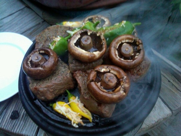 Get the coals lit (I use a Cobb Grill and it cooks steak slower than traditional methods), soak some cherry wood in water....place cherry over hot coals...let the smoke start rolling then place steak on grill and add fresh black pepper/kosher salt. Cover and cook for about 7 mins on each side until meat starts to firm up. Once it gets a little firm, take it off and enjoy.