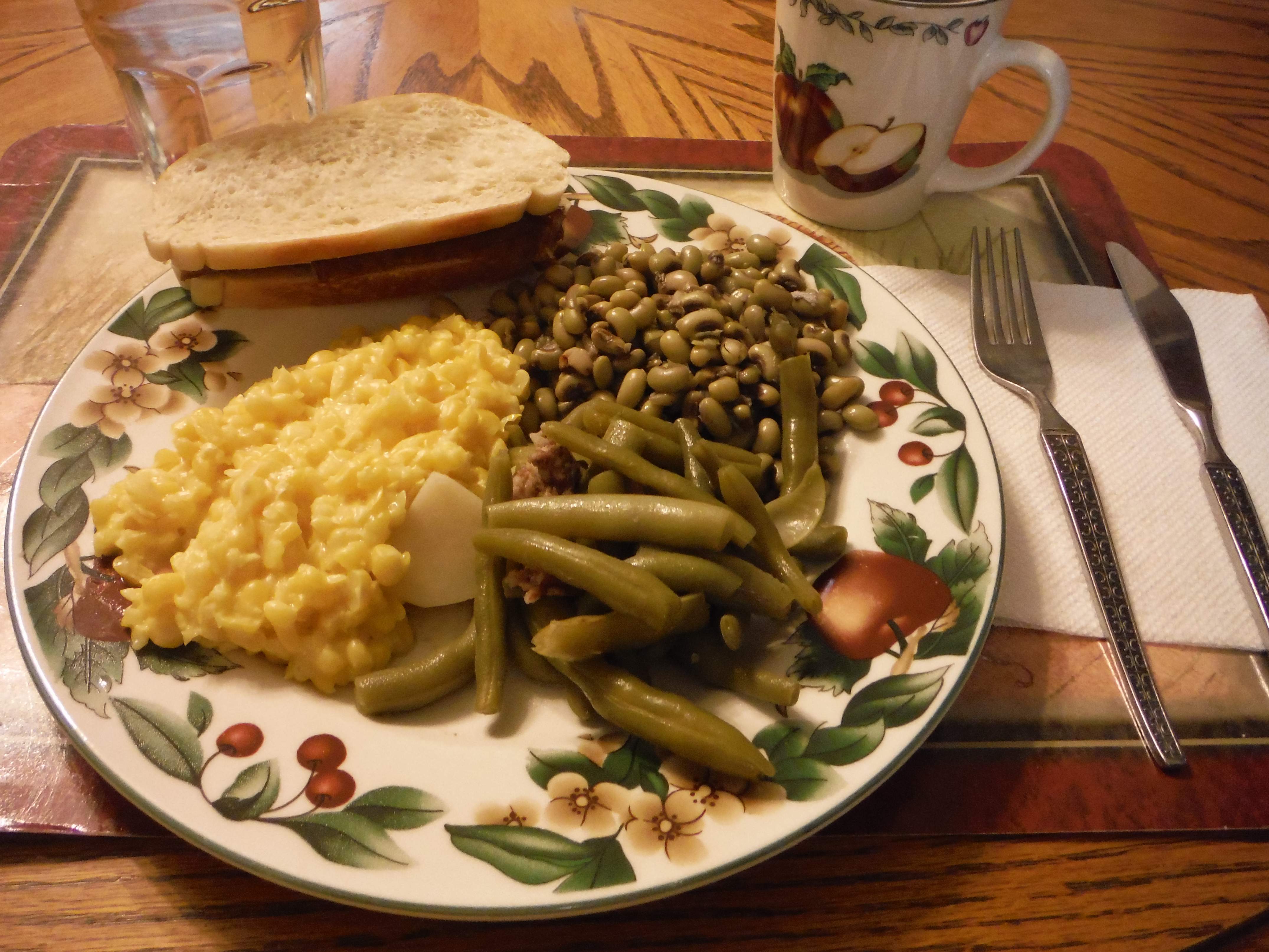 Our daughter and her son (2 1/2) were here from Colorado. We had lots of tomatoes, BLTs, etc, but for one meal we had only what we had grown in garden. Green Beans, Fried Squash, Tomatoes, Fried Okra, Corn on the Cob. Wow, was it good, and little fella ate three helpings of green beans, and I loved seeing him get after the corn on cob