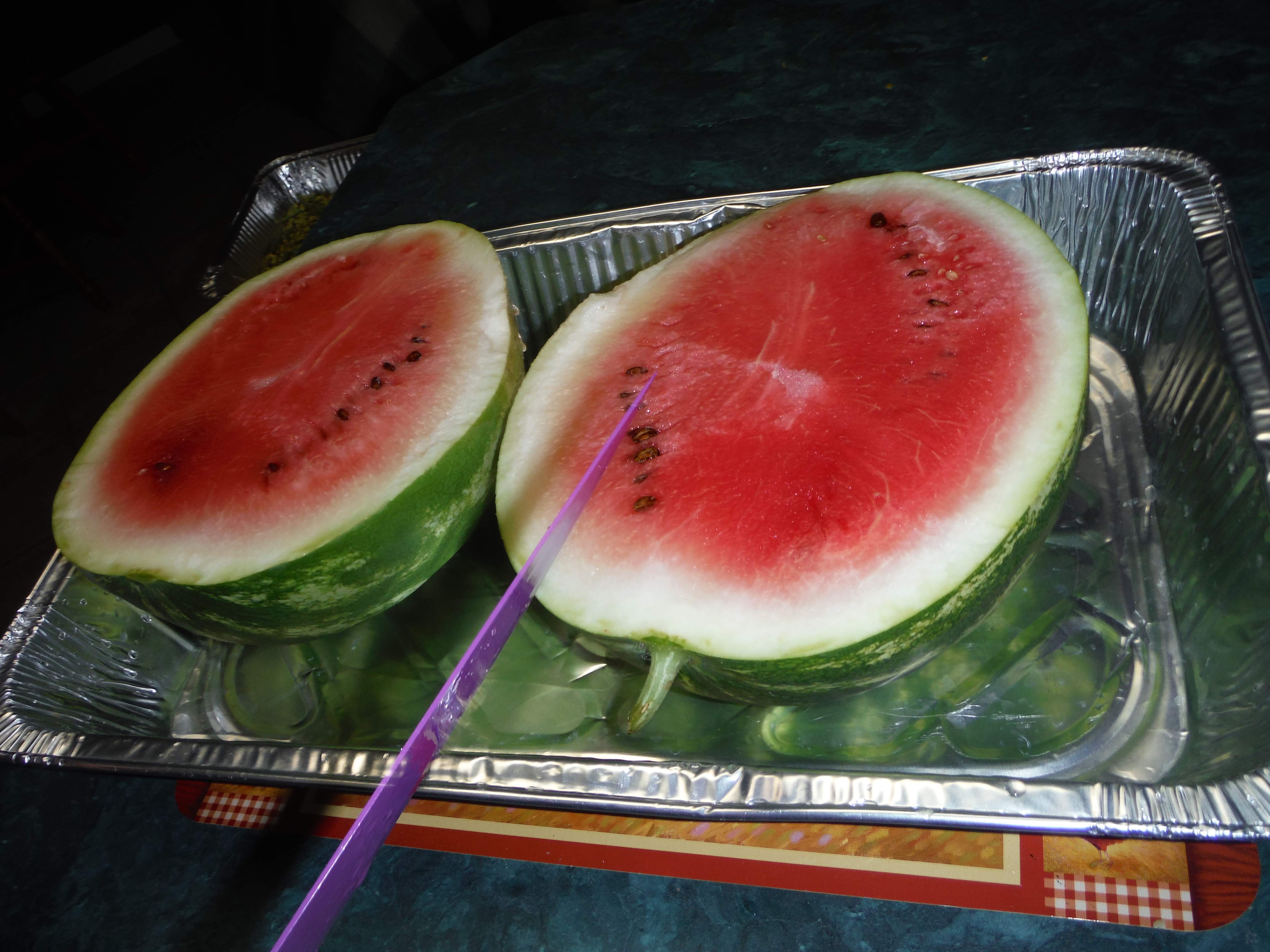 Happy 4th everyone. I clipped the first Crimson Sweet this morning. We cut it after supper. It could have used a couple more days, but it was the 4th. It was still better than the melons I have bought the last couple of weeks. Very sweet.