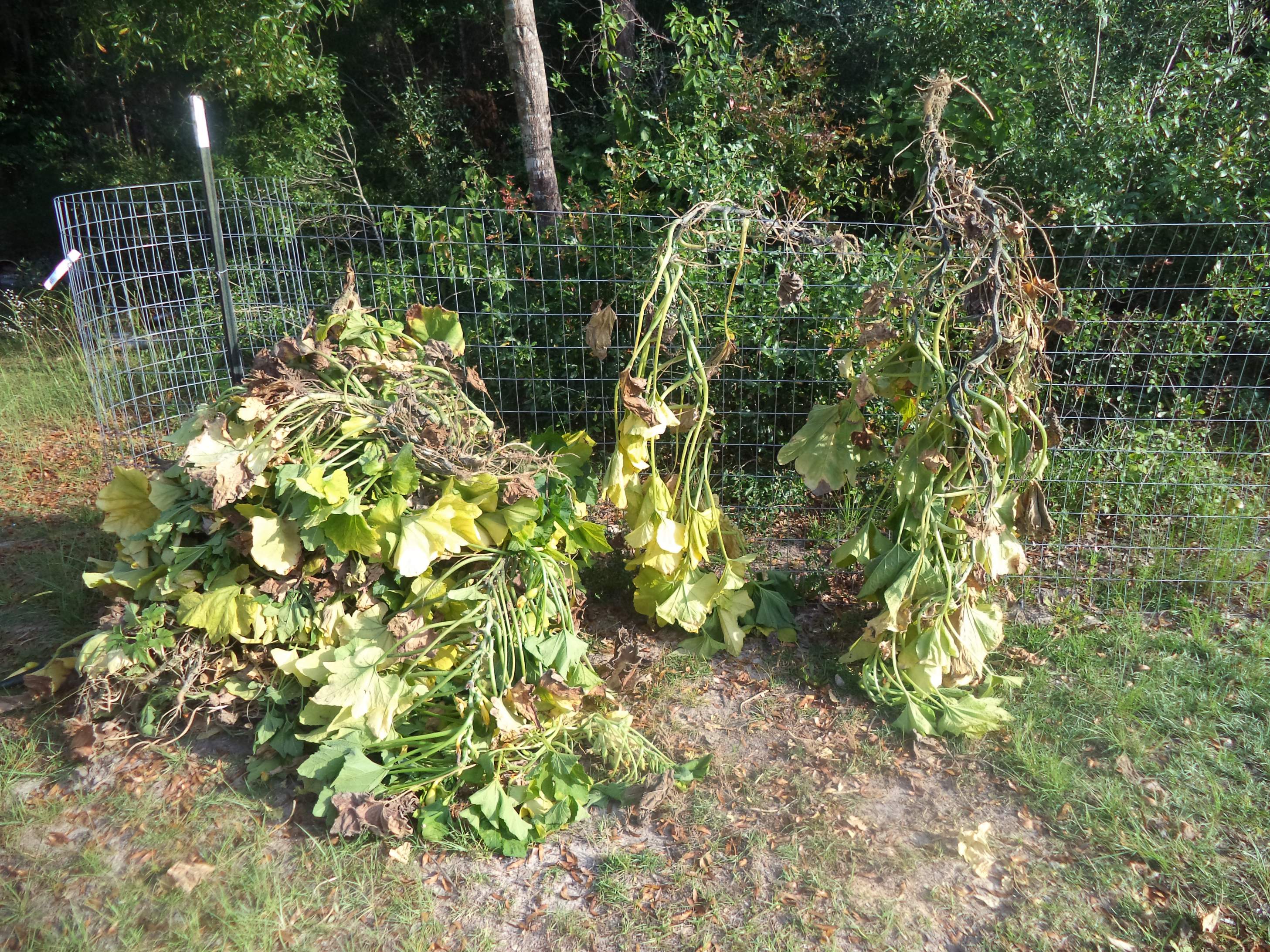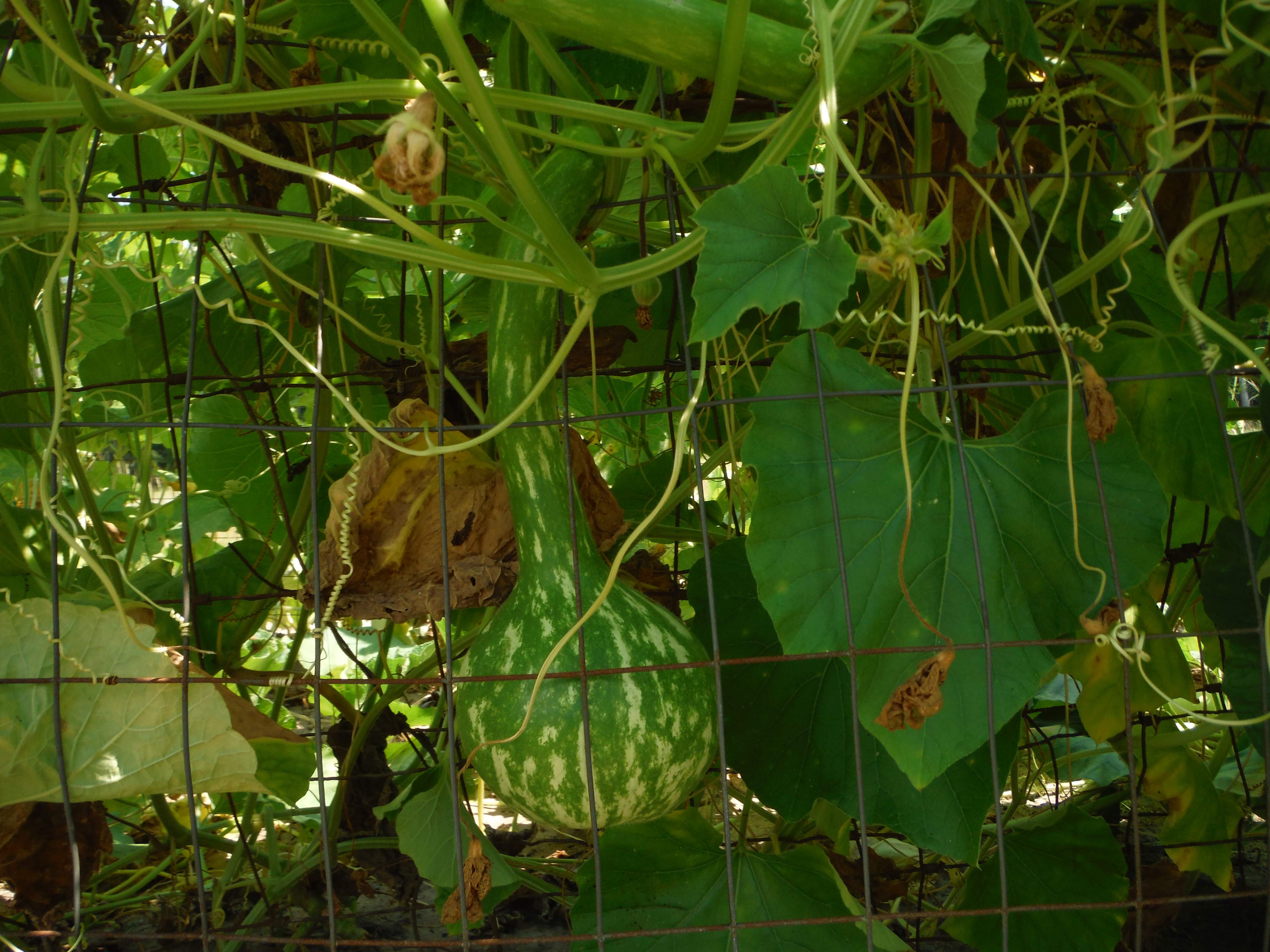 I should have used panels for my gourds. Or at least fence with bigger openings. The dipper gourds won't be too much of a problem, but there is at least one snake gourd that will have to be cut to get it out of the wire.