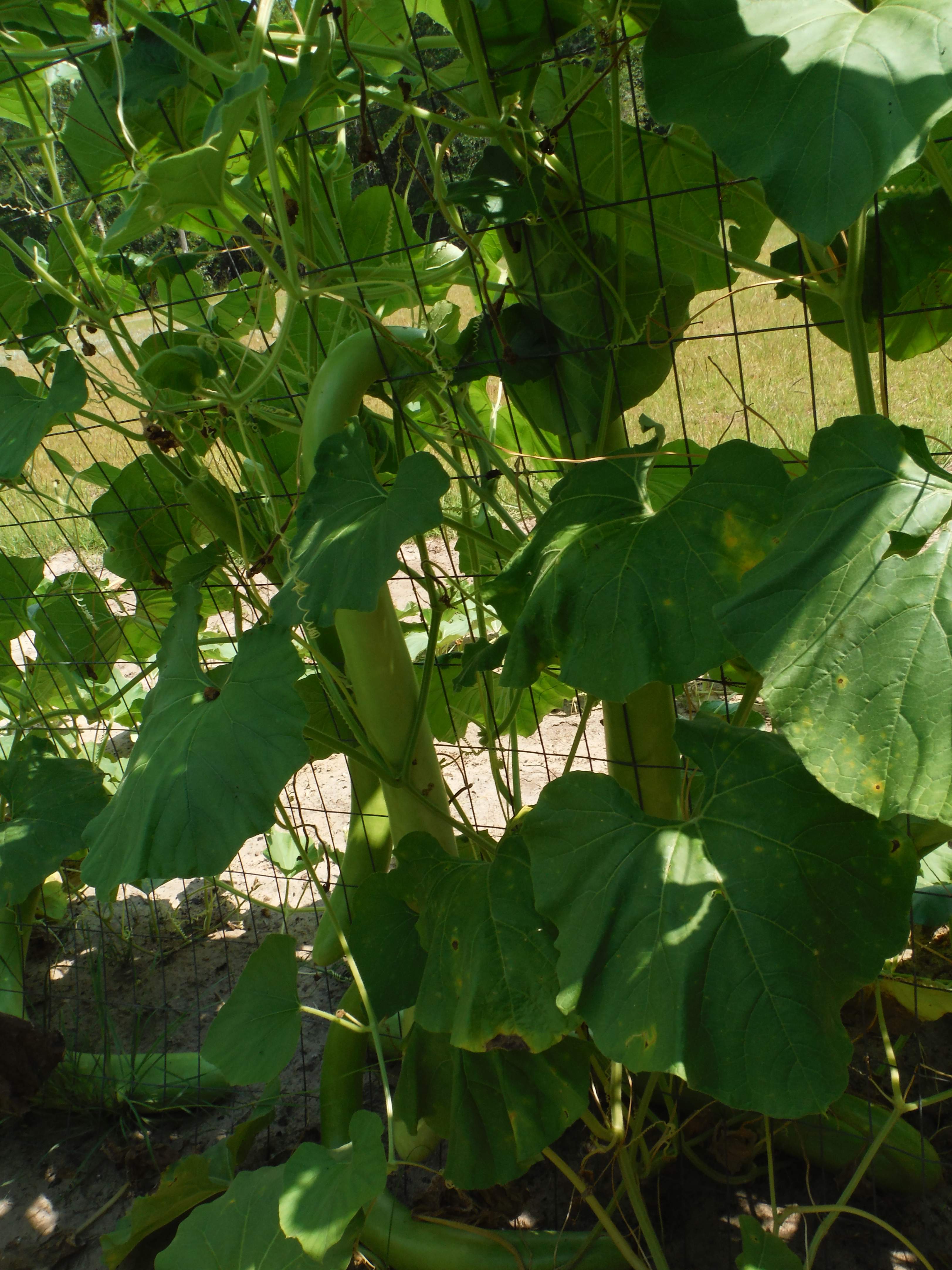 I have a fence for each kind, the dipper and the snake gourds, to climb on. But some of them ran the wrong way, or they are just too close to the ground. I used some old hog fence, with dog wire over it. The weight of the vines is really too much for the dog wire, but it was what I had when they started vining. Sister sold all her cows, so there are a few livestock panels in the old loading pens I can use next year.