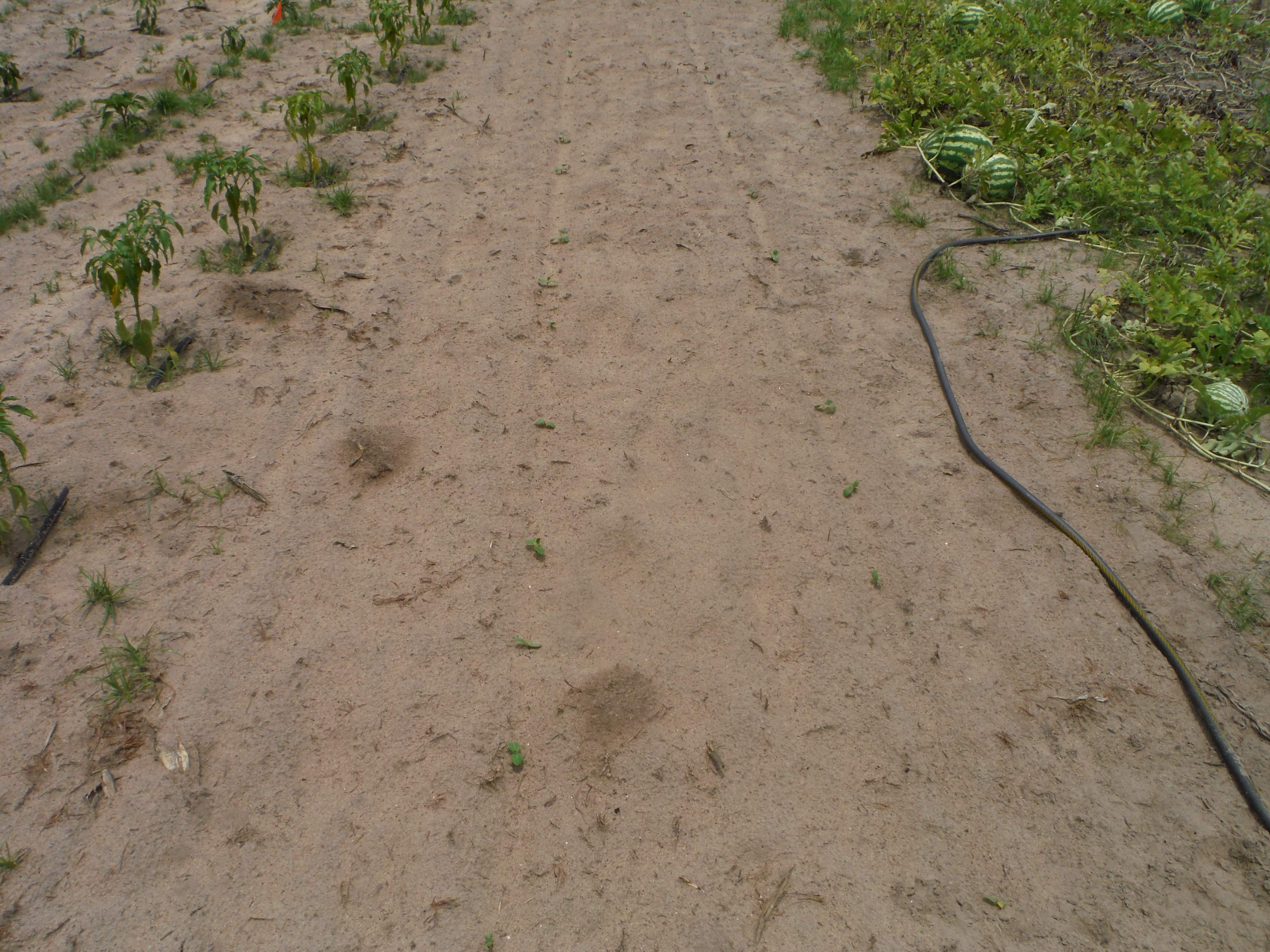 I have pulled up my squash, green beans, black eyed peas, and the stunted corn. This morning I tilled those spots and replanted squash, green beans, purple hulls and sweet corn. We had a passing shower, but it didn't hang around. I did run the sprinkler for a while, but rain would be nice.