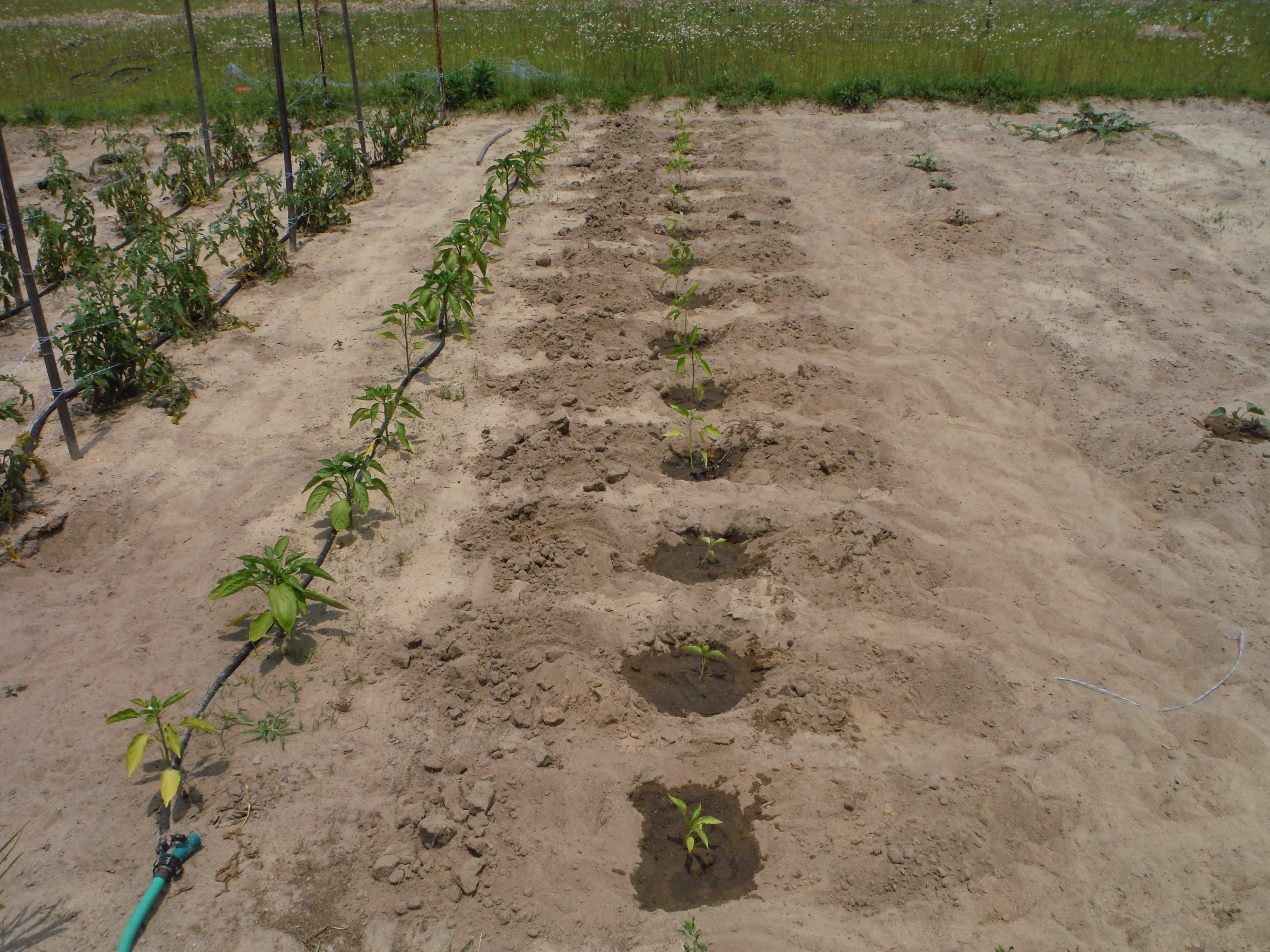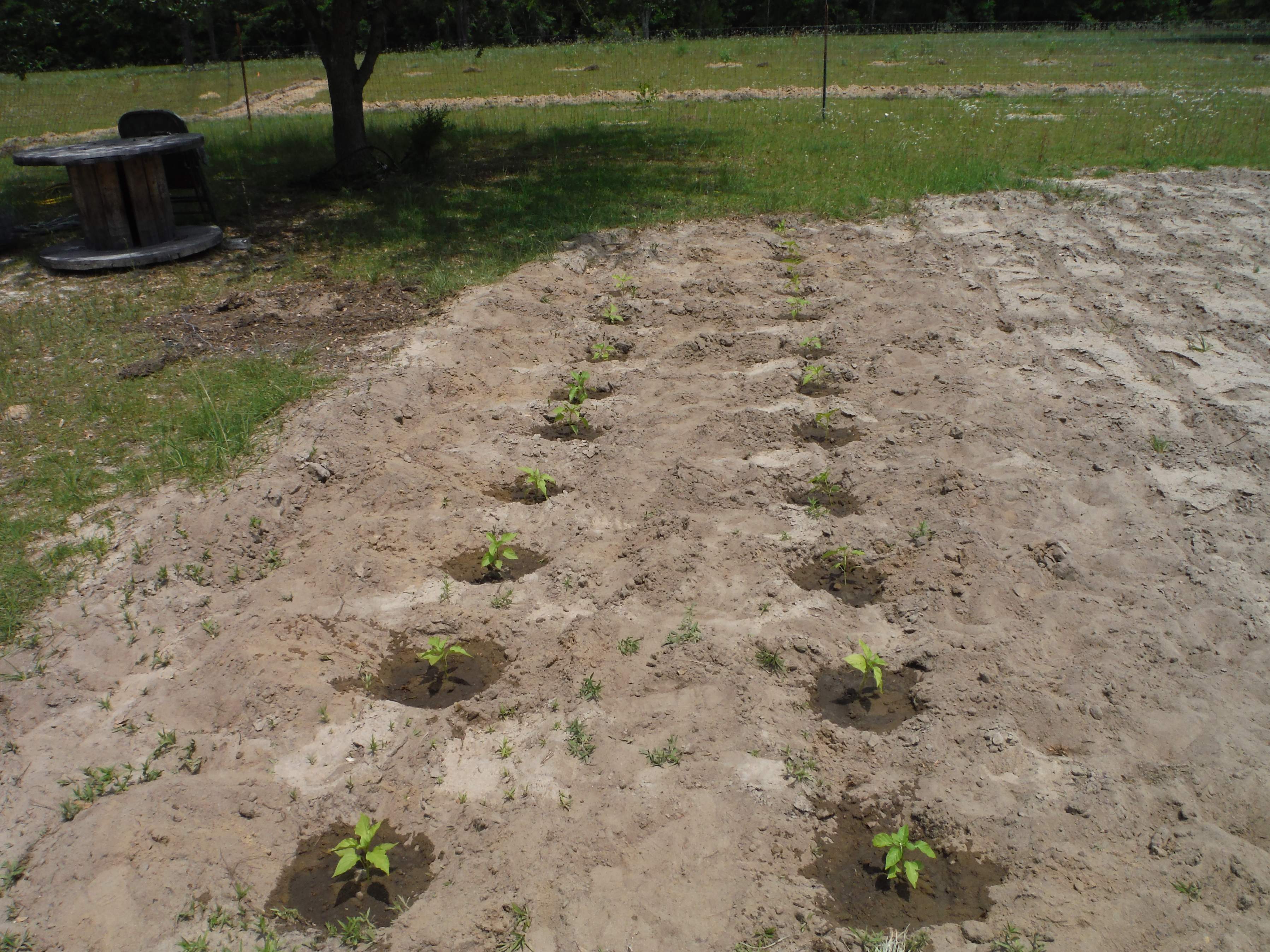 Margie and I carried some plants to a friend's house after supper. Three each of beef steak, Roma, Rutgers and cherry tomatoes, and three each of Serrano chili, Jalapeno, bell, sweet banana and mini sweet peppers. I also gave a few away at my thrift store stops today.