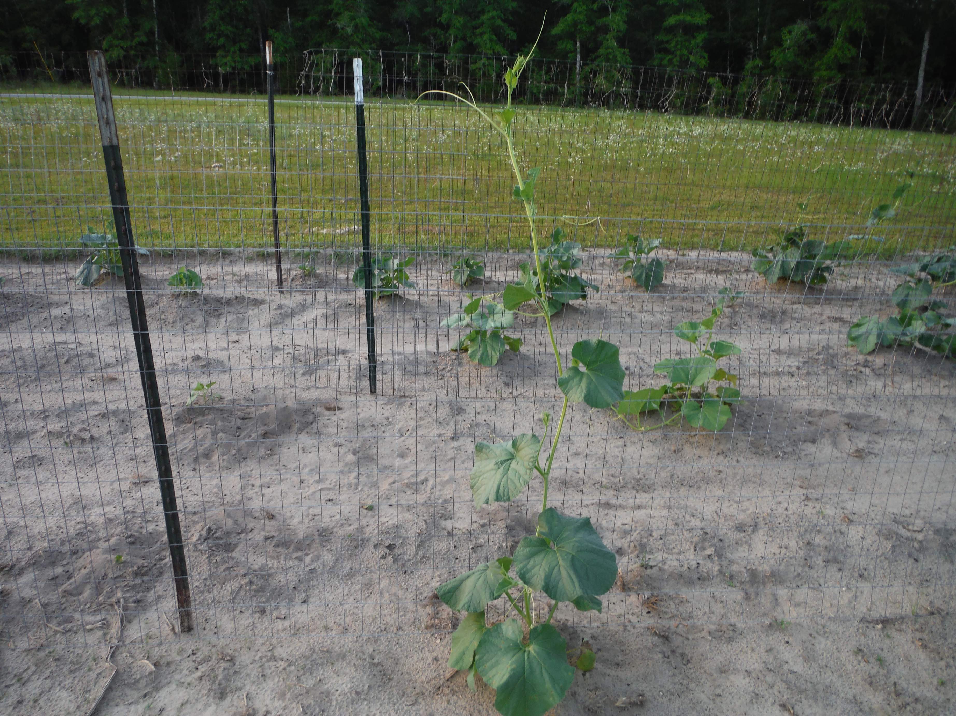 When we got back we walked out to look at the gourds. One is almost six feet, and another was blooming.