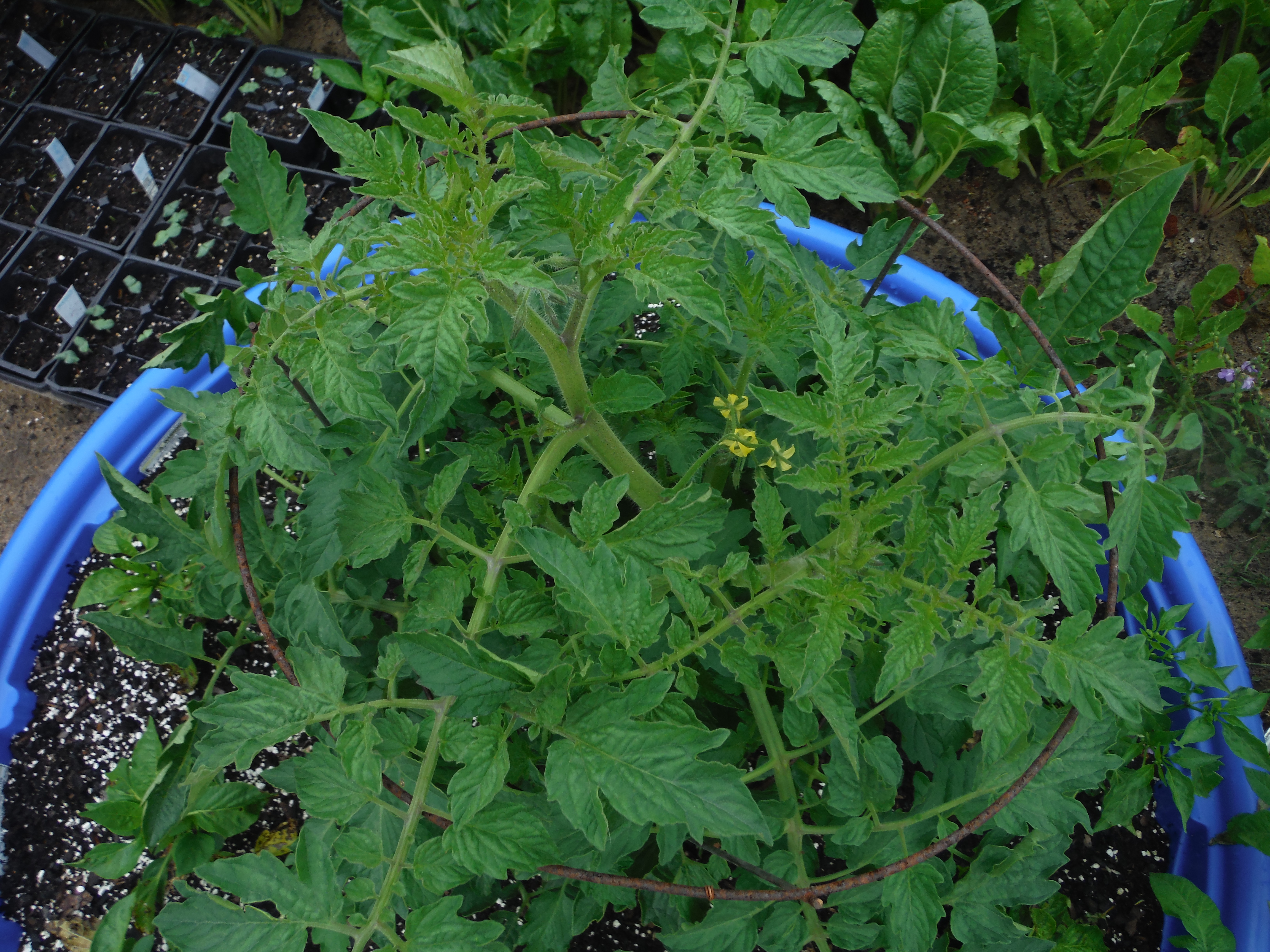 The first little tomato of 2016, showed up about April 10. Plants look healthy after a couple of cold spells. Should be ready to take off when we have 80 degrees on Monday.