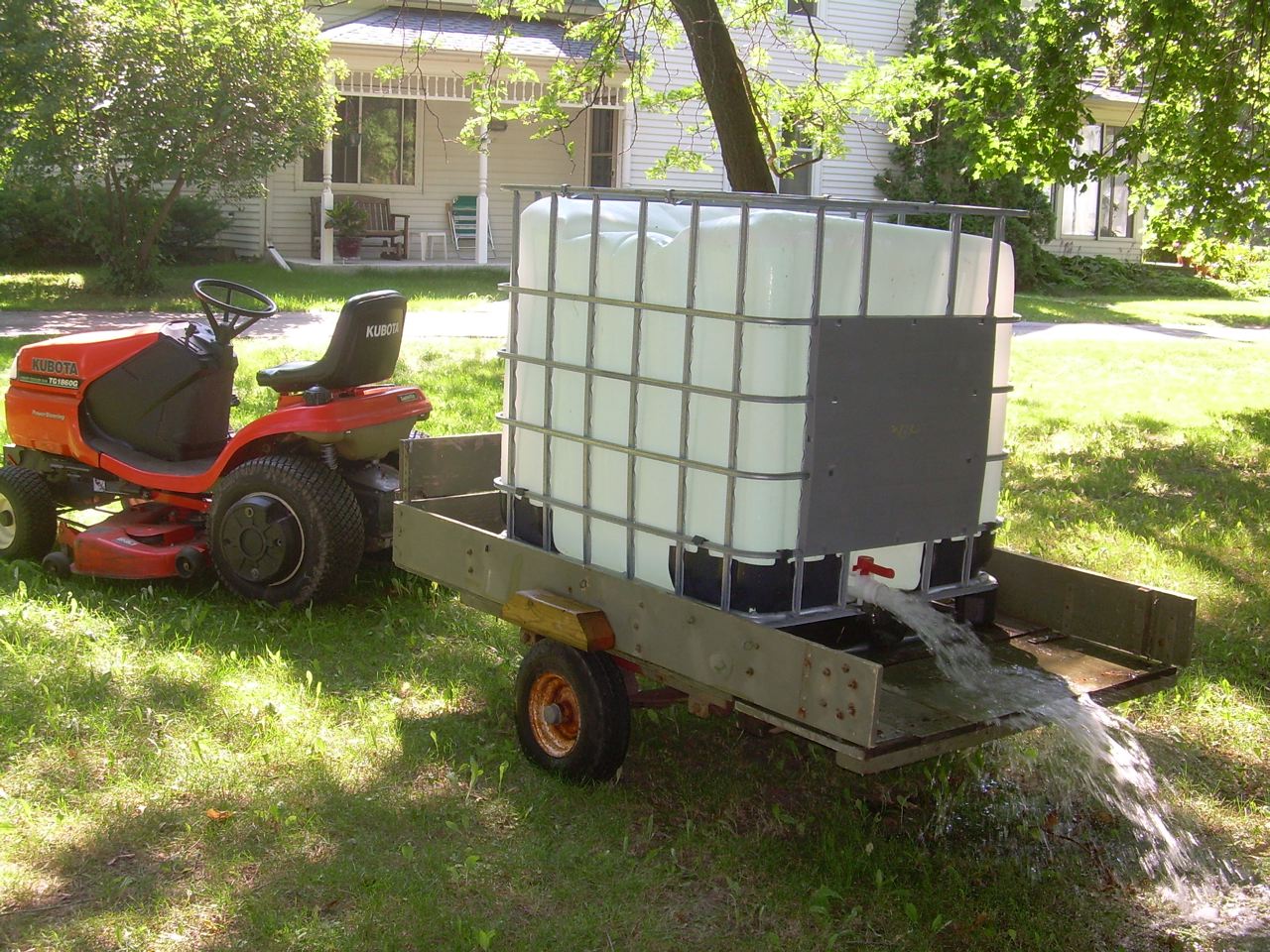 I was feeling stupid this morning so for fun I did just that :p The trailer tires are about 30 years old and rated for 590#'s each, they held as did that rickety old trailer. Mower pulled it OK, even up a slight incline, so all was fine until I opened the valve..... There is an 8" diameter fill cap on the top with a rubber gasket but no vent, I caught it in time before it completely turned inside out :eek: and pounded it back into shape with a rubber mallet. Tomorrow's another day......:D