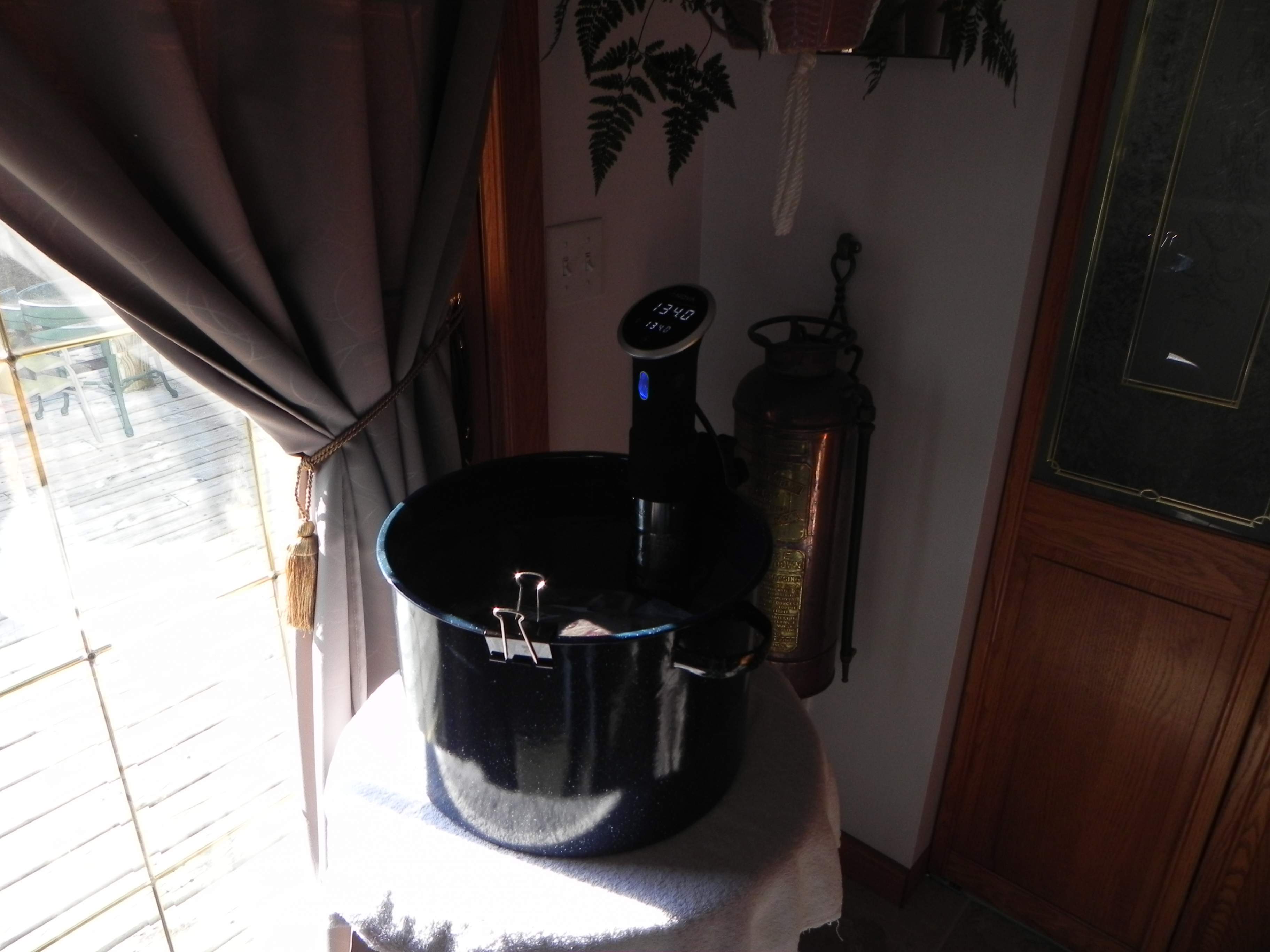 The Precision cooker is bigger than I thought. Maybe about the size of three or three and a half beer cans stacked. Looks nicely made. Maybe I will take this reminder to give it a trial run. I put some pork chops with seasoning into individual sandwich zip locks and froze them so I could test freezer to sous vide directly.