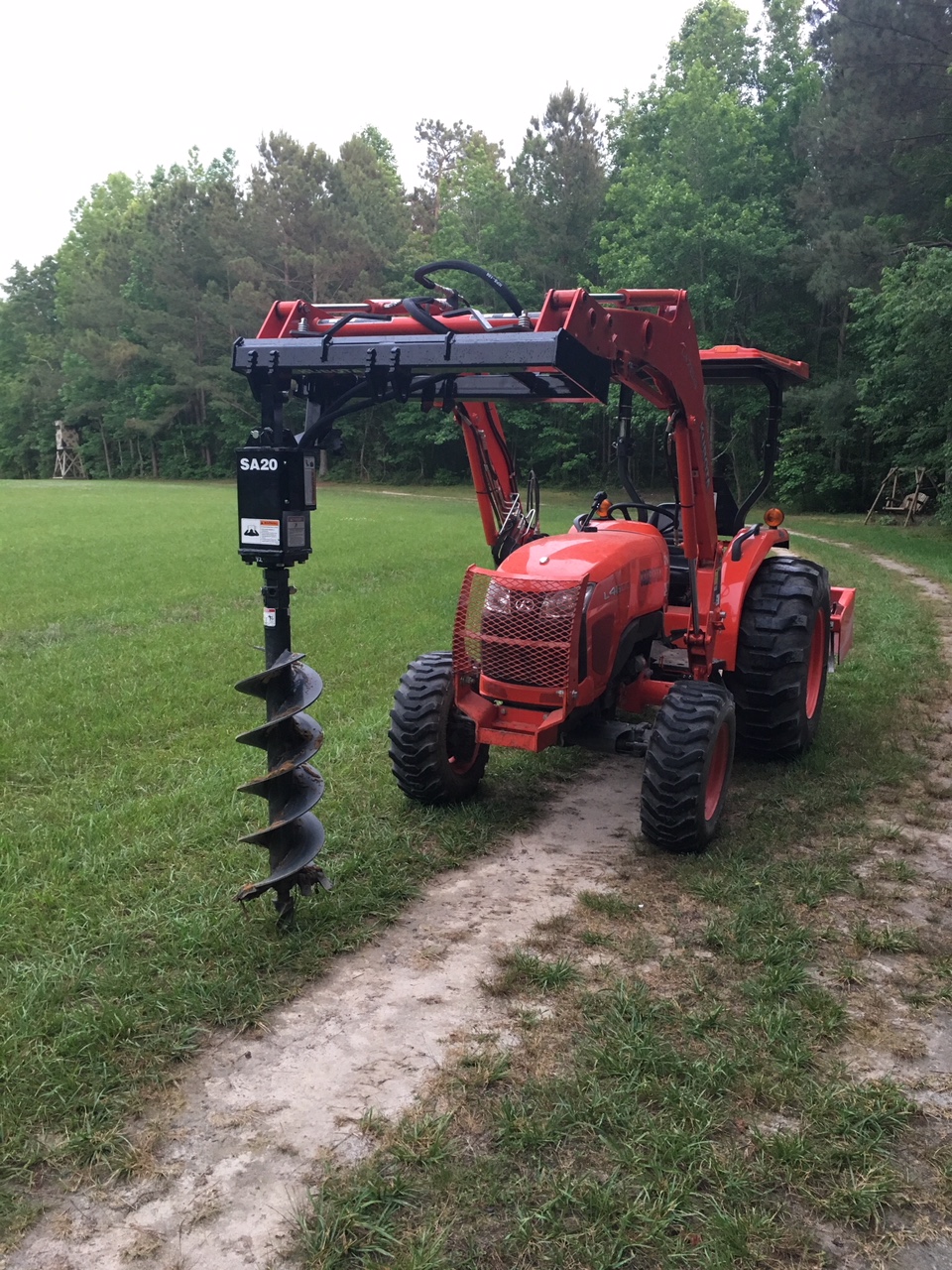 I have the Landpride SA 20 mounted on the loader. Our tractors are similar in size and my SA 20 has the 6 to 15 gpm motor. I run a 12" auger and have been pleased with the unit so far. We have a mix of clay and sandy loam soil. It doesnt spin fast enough to clean out the holes in the sandy loam, but works well in clay. Down pressure is great as is the option to reverse. The slower bit speed also helps with overall control. I use the offset mount for better visibility. Last I run the hydraulics through a WR Long 3rd function kit.