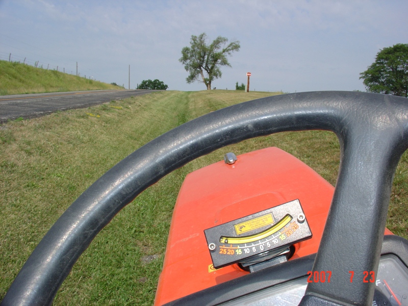 I was Deployed late 2005 thru late 2006. My wife was left with the task of mowing. She was very concerned about tipping the tractor. I bought a cheap tilt meter and installed it on our Kubota B2910. Told her to use the gauge to get accustomed to the tractor and it's abilities. Told her to never exceed 15 degree side slope. The tractor was amazingly stable at that angle so figured I gave her enough cushion that she wouldn't have problems and she didn't.