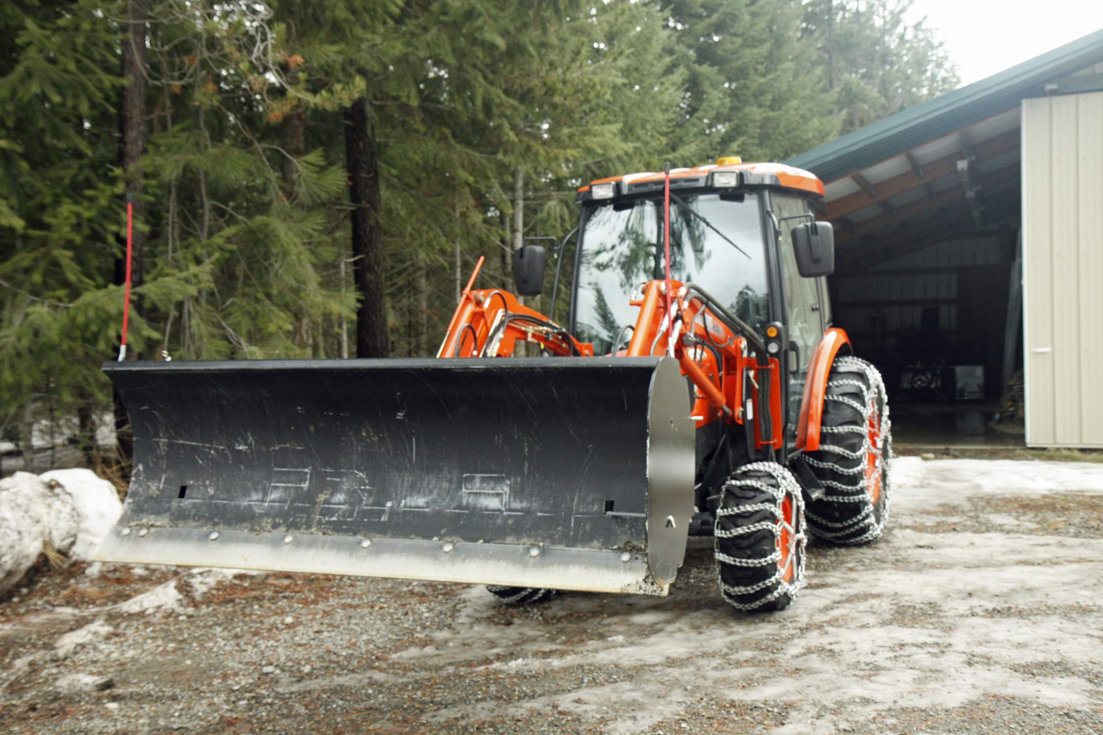 I tried plowing without the front chains on and if i tilted my blade to the side, the front of the tractor moved in the other direction. With the chains it tracks straight.