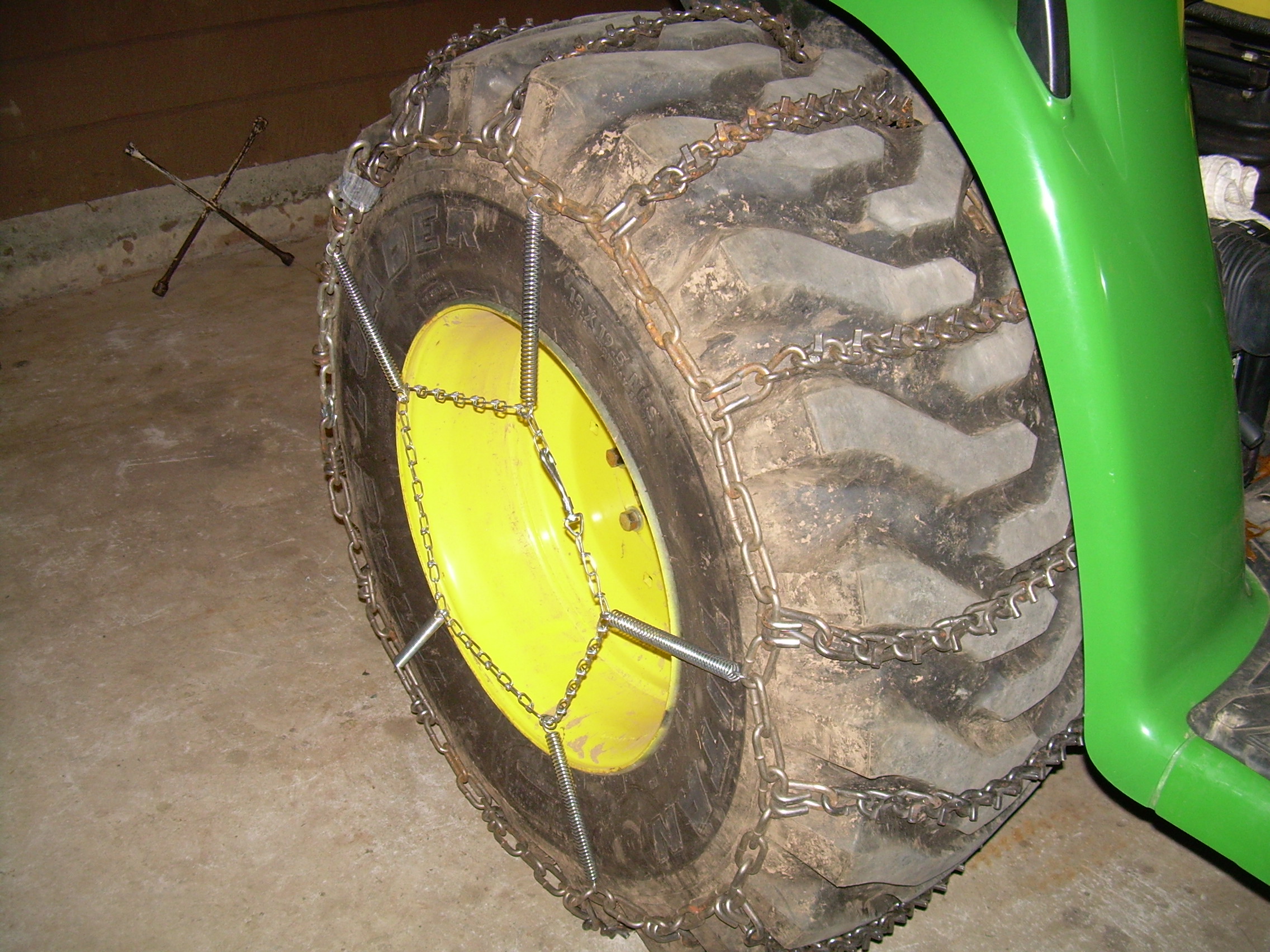 Front chains don't over stress the frame or axle. I even checked with Kioti main office thru email, and there perfectly fine with chaining up the front end. wont affect warranty.