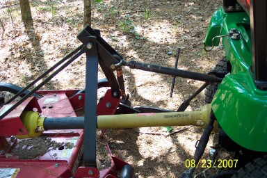 Top photo shows my mower attached without the Quick Attach thing. Bottom photos show the iHitch type attachment. In the bottom photos, everything is connected except the top arm.