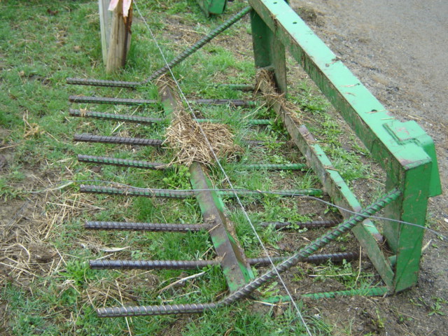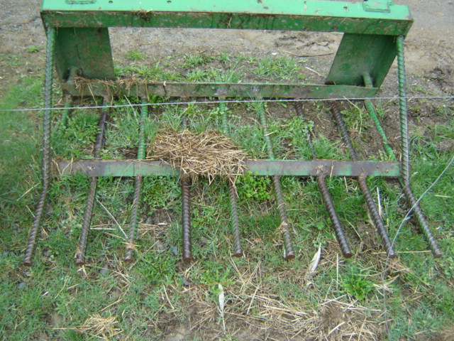 This is the first version of the one I built. It has 6" tine spacing, tines are 36" long and it is made for a JD quick hitch. It was awsone except the 1" Rebar dowels I used kept breaking. Version 2 which I do not have pictures of, is exactly the same except I bought some 1 1/4" 4140 alloy steel, have yet to bend a tine and it works awsome. I use it to move wet hay bedding, brush, firewood, rocks and anything else I can think up. Originally it was going to have a grapple on it but I nver got that far.