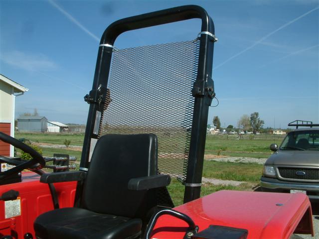 It's a piece of expanded metal from my local weld shop attached to the ROPS with hose clamps (you don't want to drill or weld on the ROPS since it's a safety device).