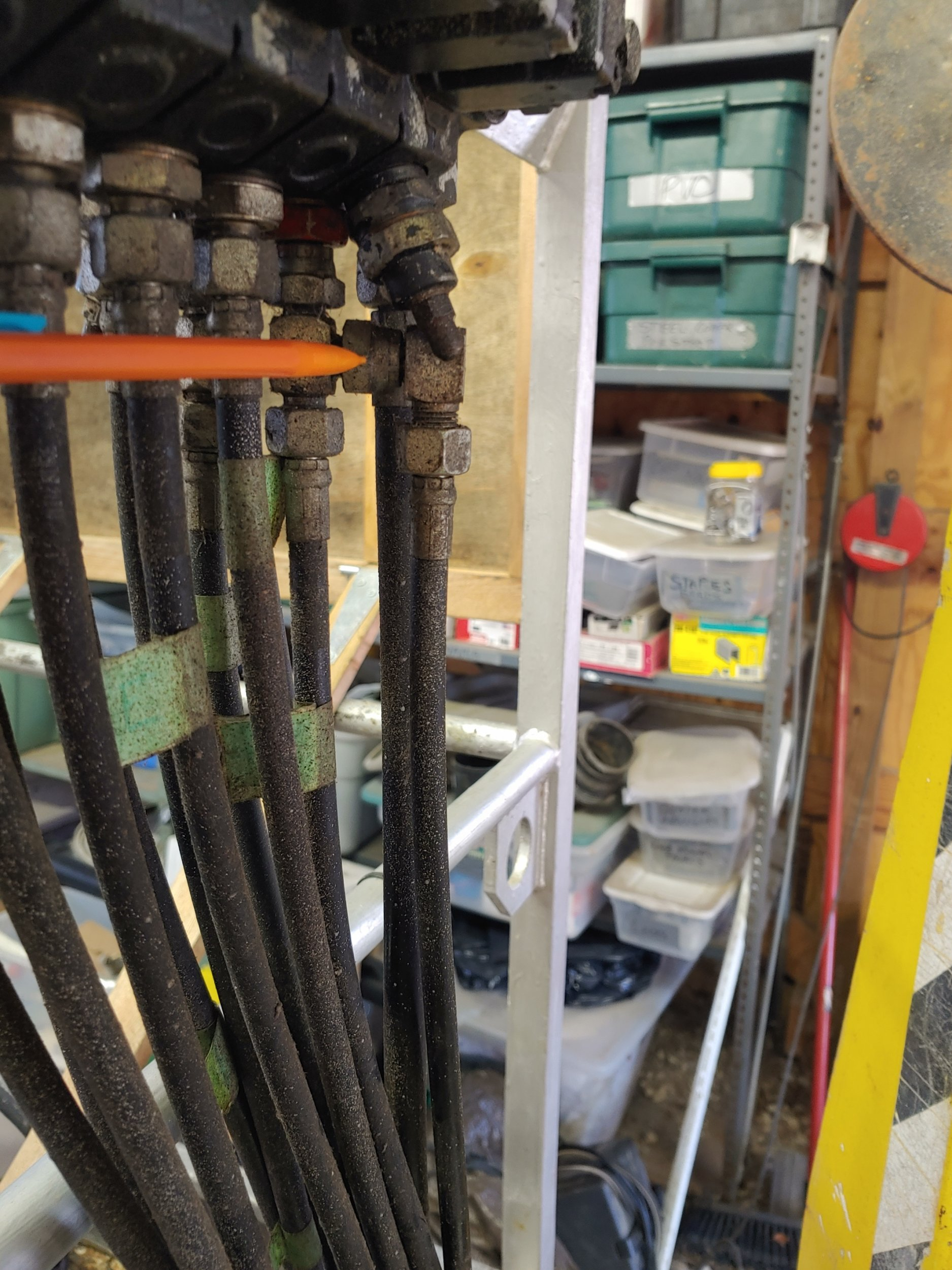 Back to thinking we need gauges in the system. Since closed system be nice to have one in both the rod and cap end lines so can observe what is happening. Problem how to do this with introducing more air or in a location where the air cab be purged easily or easier.
