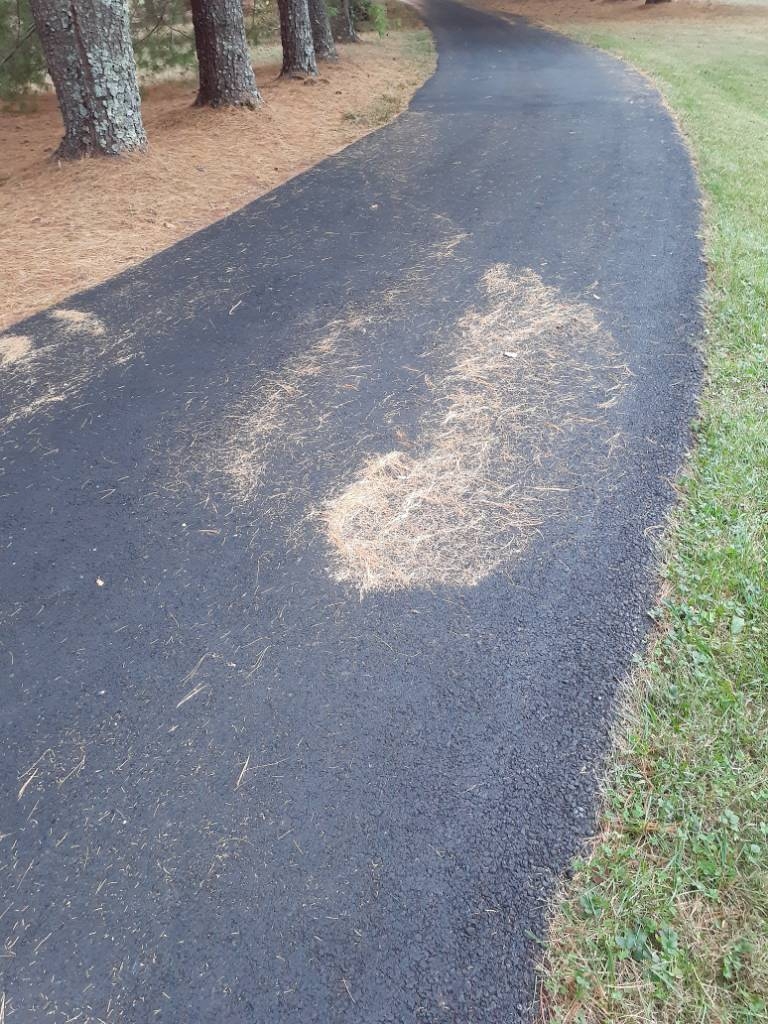 Driveway it skips places just like yard and leaves are bone dry.