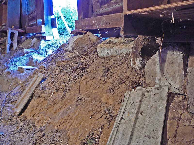 The photo shows where I cut a new access door to get under the house to deal with this.