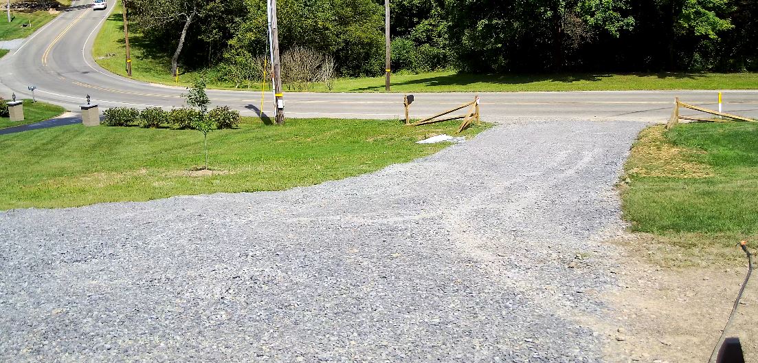 Then I thought that it would be less invasive to put a chain across. I don't want to have to move the chain every time I need to enter the driveway. If I could put a wooden post on each side of the driveway and connect the mighty mule gate opener on the one side, I could use that to lower and raise the chain. I would mount the Mighty Mule vertically and put the chain on the end. This would raise the one end of the chain up and down which would be enough to run over it when it is down. Here is a picture of my driveway entrance. I am open to other suggestions.