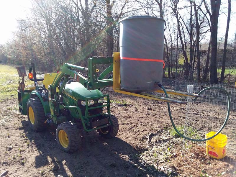 My father ran into this same problem when he planted the "new" trees at his house. He started using a 250 gal tank, he would fill it with water and then use his Bobcat to carry it to the trees. But he got sick of making so many trips and also he needed the Bobcat at the house in order to do this, which didn't alway work since it would sit at jobsites for 3-6 days at a time. So he then found a 500gal poly tank that he put in the back of one of his F350's. That worked for a while until he disided to down size the number of trucks he had, and didn't want to load/unload the tank all the time. Then dad a old gravity box with 5 ton running gear. We ripped the gravity box off and welded in some supports and mounted the 500gal tank on that, and this is still the set-up that he is useing now. It works out pretty good since he can use either the BX2360, L4200, his truck, or even the 4 wheeler to move it around the property to do the watering.