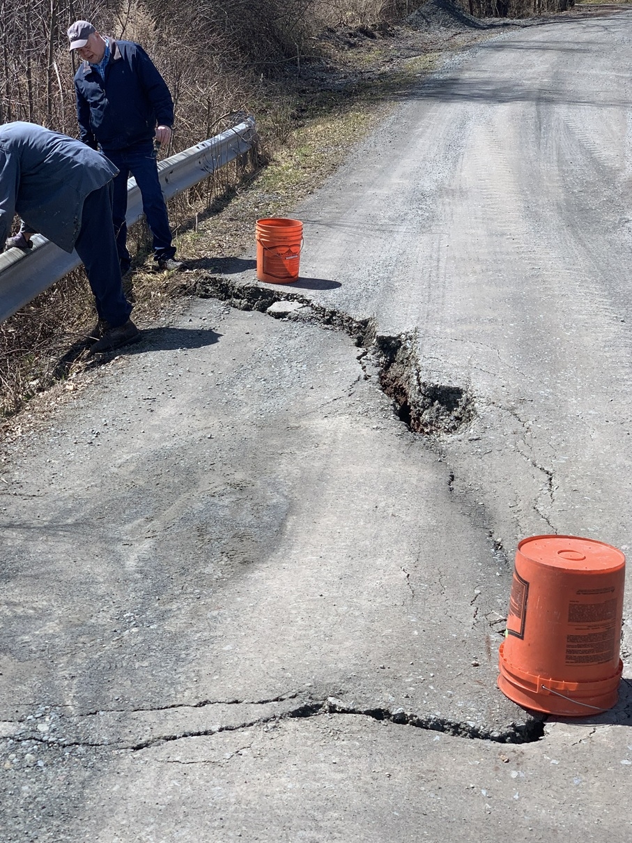 It's a private road, used by only a few property owners with limited resources. Contractor estimates to replace it with a 6' poly pipe are upward of $50K, which we can't afford. The price is elevated by DEP regulations which require the stream to be diverted during construction. The only way to do this is with large pumps. Stream flow and environmental impact studies prepared by a certified engineer are also required. Construction is made more difficult by overhead transmission lines.