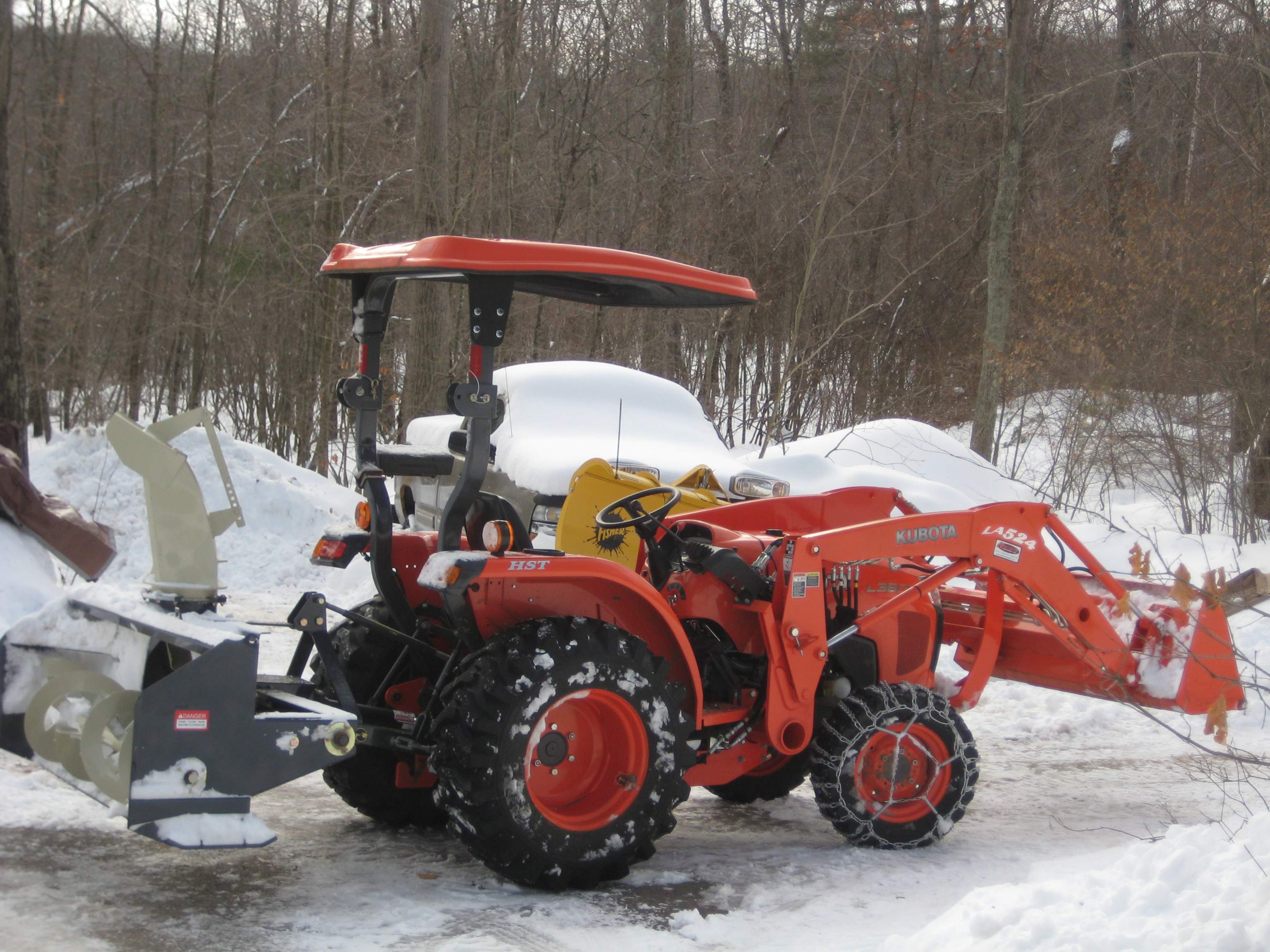 Glad to hear your satisfied with your new equipment. I keep having that running out of $$ problem also. What size are your rear tires? I saw a set of ice chains for 16x 28 tires in Craigslist the other day for $350. Are your rear tires loaded? with the blower down working it doesn't help with traction so with ice underneath you could pick it up and get to the snow but then not be able to advance into it working. Once you get it all chained up you will have an awesome snow fighting setup. :thumbsup: