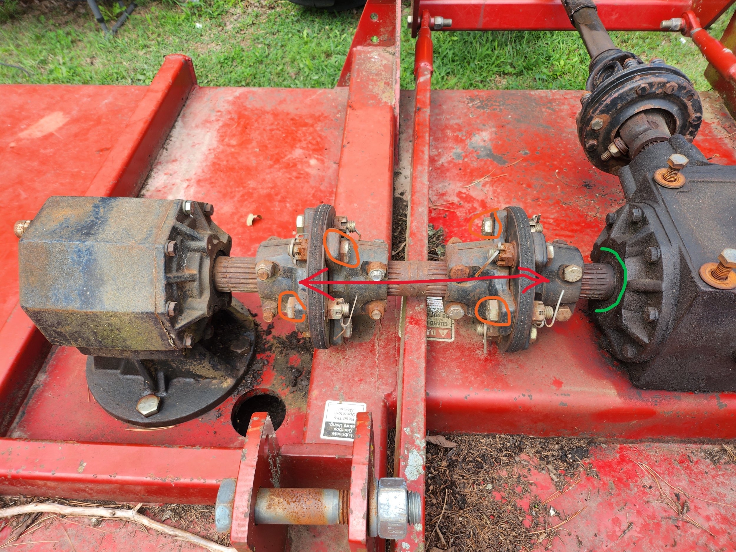 So I have nearly zero experience with a multiple spindle cutter. I took the cover off to get a look at the gear boxes and shafts. I am confused at the what I would call shaft couplers being loose, they can slide back and forth on the shafts, I don't think past the shaft end but I have not tried that hard to verify for sure, if I get a picture attached that will be shown with the red directional lines. Some of the bolts on on the couplers, circled in orangeish color, are loose. Some oil buildup on the center gear box like maybe the shaft seal is leaking. My main concern right now is the loose bolts and the couplers that slide. I don't know if this is normal for shaft tension relief or something. I also pulled the fill plugs on all 3 boxes and there is a strange combination of gear lube colors. One is cream and one is almost reddish color, and the center box looks like what I would consider a normal gear lube color. Pictures included I hope.