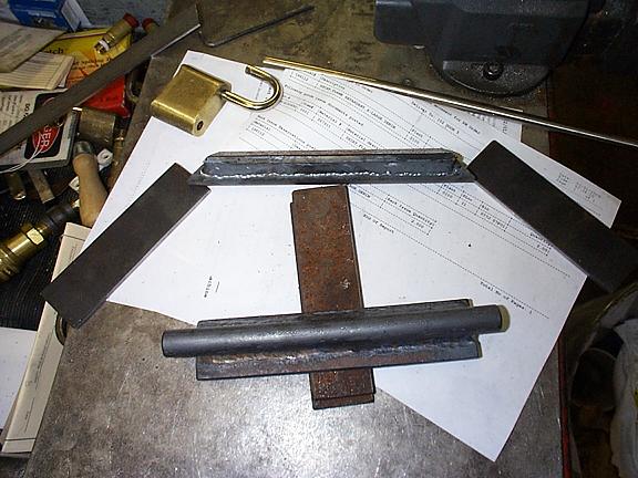 I used a 3/8" angle for top and mottom lips and 6 x 1/4 plate for the mid section (stiffened more by what it was ultimately welded to). Plasma cutter for the latch pin cut-outs.